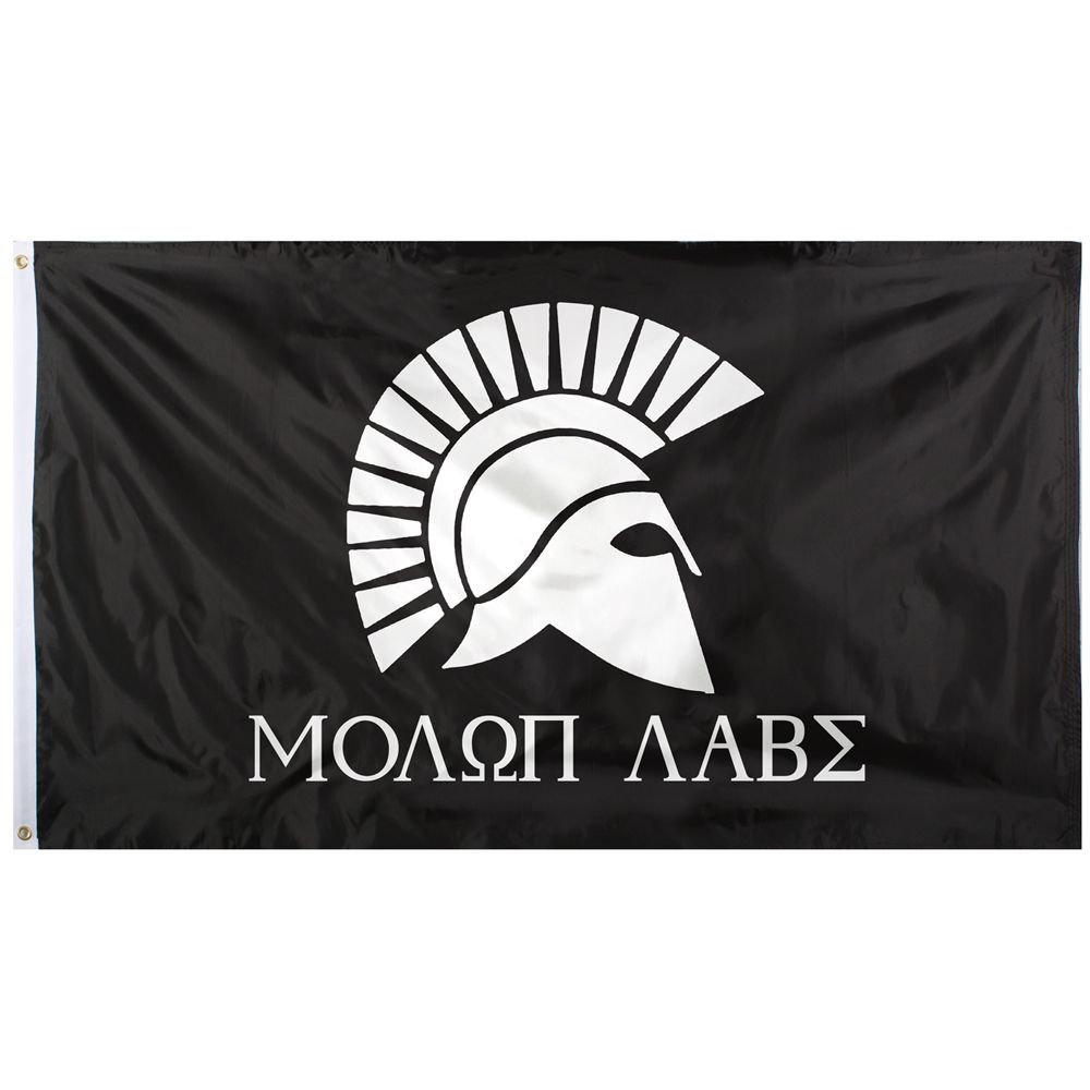 Make a bold statement with the Molon Labe Flag, designed for patriots who stand their ground. Measuring 3 feet by 5 feet, this all-weather flag is made from durable polyester and features the famous Greek phrase “Molon Labe” along with a Spartan helmet in white, symbolizing strength and defiance. Whether mounted on your flagpole or hung indoors, the metal grommets make setup easy. This is more than just a flag—it's a symbol of courage and freedom in the face of challenge.