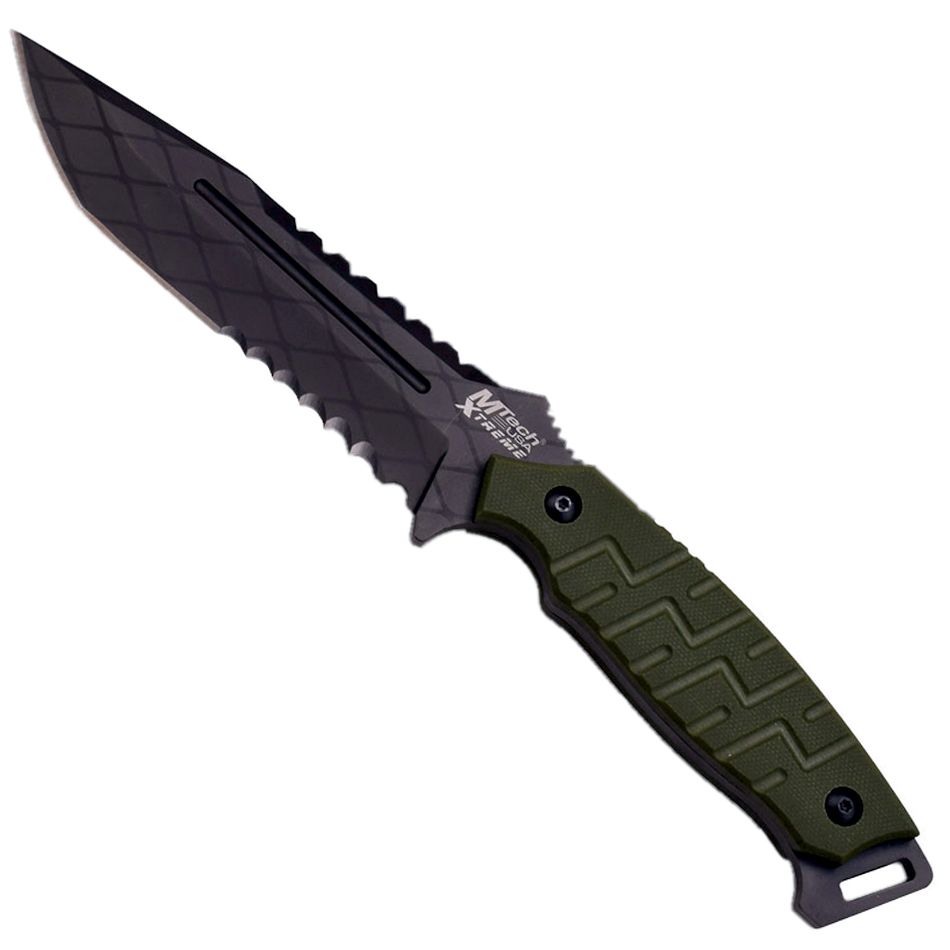 Partial Serrated Tanto Grey Coated Blade