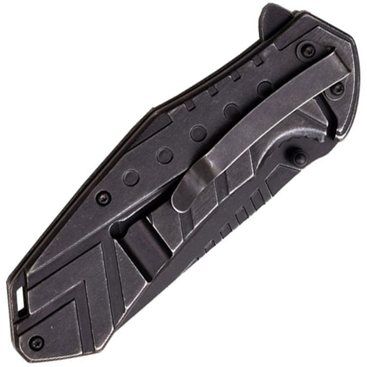 The M-Tech Perpetrator is a folding knife for everyday carry. Easy to use and hold, makes this the perfect knife for your daily needs. The stainless steel, Reverse Tanto style blade has dual thumb studs and a flipper. The handle is made of black grooved stainless steel. It features a lanyard slot and a frame lock. It comes with a stainless steel pocket clip.