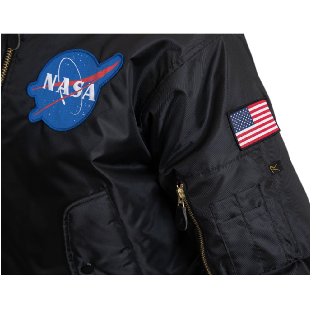 Represent NASA with Ultra Force's MA-1 Flight Jacket Featuring The Iconic 'Meatball' and Space Shuttle Logos!