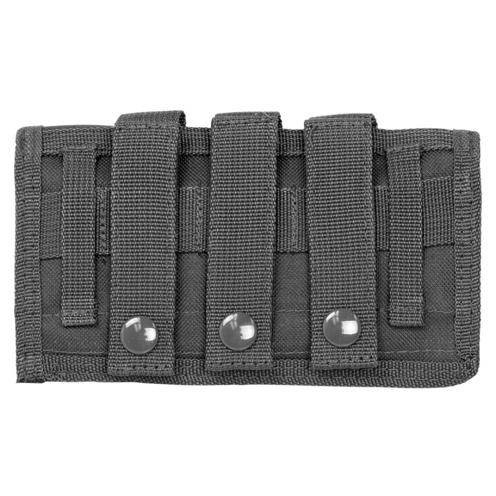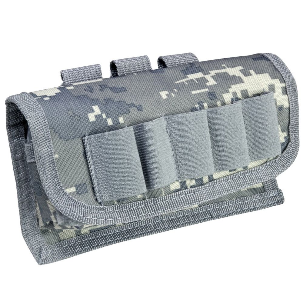 The NcSTAR Vism Shot Shell Pouch has elastic loops to hold a total of 17 shot shells. There are 2 rows of 6 elastic loops inside the pouch and a single row of 5 elastic loops on the front flap of the pouch. The pouch has three PALS straps located on the back panel for securing pouch onto MOLLE webbing. You can attach this shot shell pouch to a: MOLLE vest, shotgun case, shotgun scabbard, or any MOLLE compatible gear.