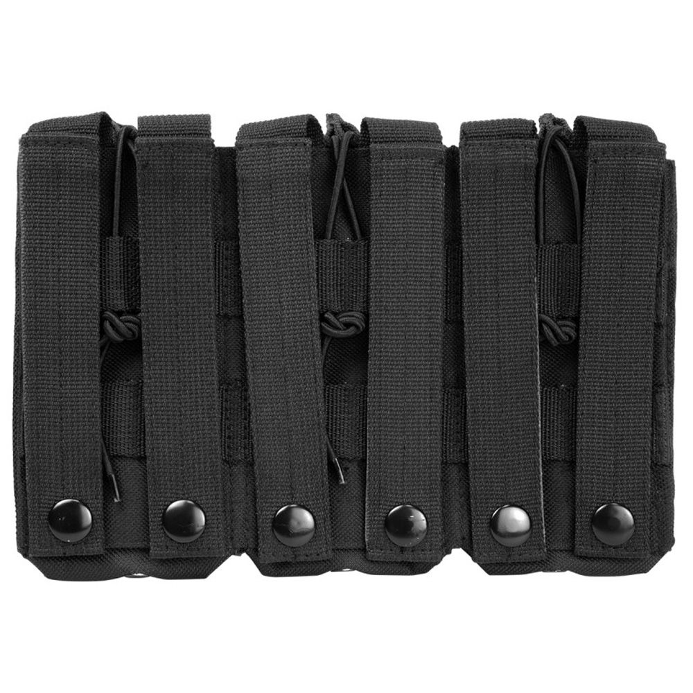 The NcStar Vism AR Triple Mag Pouch is constructed with heavy duty PVC material. It holds 3 AR style 5.56/223 or 7.62 x 39 magazines. The adjustable bungee style retentions straps make access to your magazines easy while securely holding them in place.