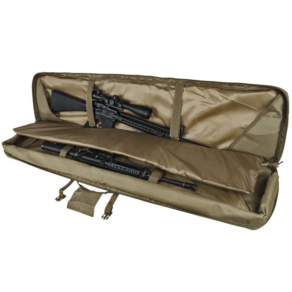 The NcStar Vism Deluxe Rifle Case proves that bigger can be better. This impressive 1.4 m (55 inch) gun case is designed to protect and transport up to two rifles. Front pockets ensure that you can take all of your essential shooting gear along. The heavy duty PVC case can be carried with the padded carry handles or with the adjustable padded backpack straps. A sternum strap with a plastic quick connect buckle is included to help support heavy loads.