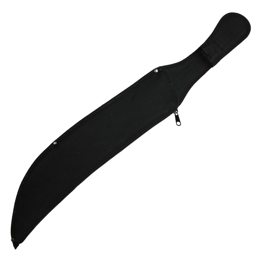 This machete is slim, curved, and ready to work wherever it is needed. Whether you are in the fields, chopping corn stalks or in the jungle cutting a path through a bamboo forest, this black and Chrome green two-tone blade is perfect to slice through any plants that are in your way. No need to worry about it slipping from your hands when they are wet because the handle is wrapped in a black cord which makes using the machete much easier.