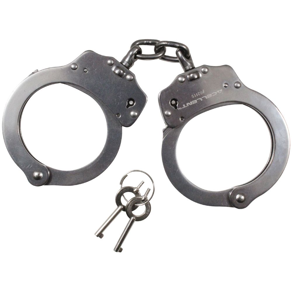 Deluxe Hinged Handcuffs are made up of nickel plated steel material. Handcuffs usually come in a pair. This product has a double lock to ensure safety. This hinged handcuff also includes a storage case. The export control classification number of this product is 0a982. The hinges of these handcuffs are extraordinarily sturdy and give excess control. It comes with two keys. This hinged handcuffs are widely used in law enforcement departments. This product is excellent in quality and it is available at reasonable prices. It has very good durability. This white colored hinged handcuff is available in only one size.