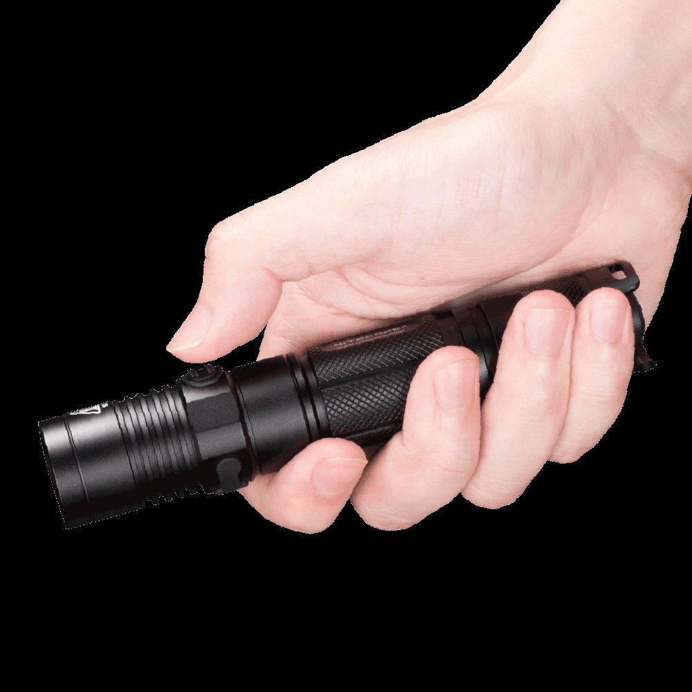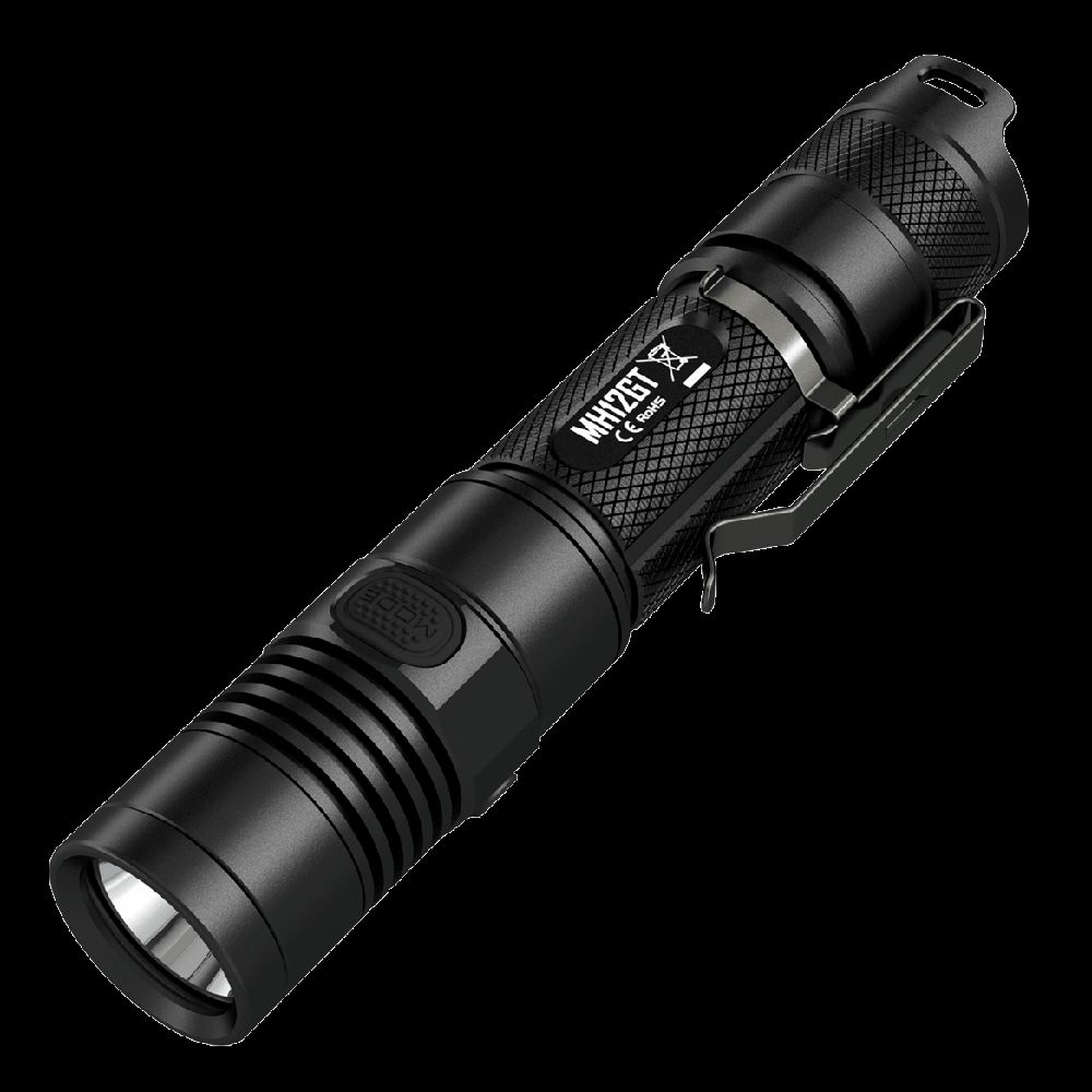 The Nitecore MH12GT 1000 Lumen Compact flashlight brings the Grand Throw upgrade to the best-selling MH12. The improved CREE XP-L HI V3 LED offers up to 349 yards throw and a peak beam intensity of 25700cd - a 190% increase from its predecessor! The included 18650 rechargeable battery has also been upgraded to a high capacity 3400mAH cell which can provide up to 520 hours runtime on a single charge. Suited for tactical use, the MH12GT is easily operated via a dual tailcap and side switch user interface. A single tail cap button allows for one-handed operation of on/off functionality while a conveniently located side switch lets users select from four brightness levels and three special modes.
