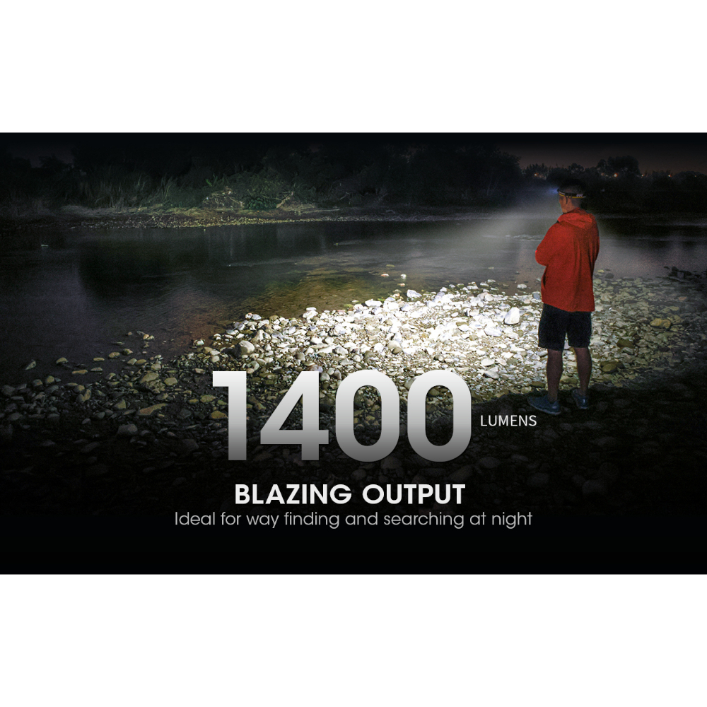 The Nitecore NU43 headlamp brings power without breaking your back. Just a little over 4 ounces in weight, the NU43 is capable of a 1400 lumen max with a max beam throw of over 142 yards. Equipped with an upgraded unibody optical lens system, you get a combination dual LED spotlight to see in the distance, and a floodlight for close-up tasks and reading. Alternatively, switch to the auxiliary red light to protect your night vision or as a long-lasting signal light.