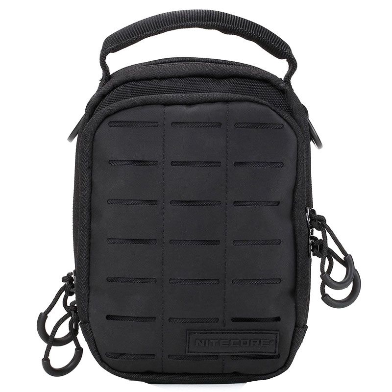 This tactical utility bag from Nitecore is like a portable safe for your equipment. Dual-layer 1000D nylon and Hypalon synthetic rubber protect the cushioned inner compartments from damage, water, and dirt. Bungee retaining straps and inner lining pockets keep everything snug and secure wherever and however you travel. Full length MOLLE webbing on the back and front panels allow you to customize and carry this bag anyway you like.