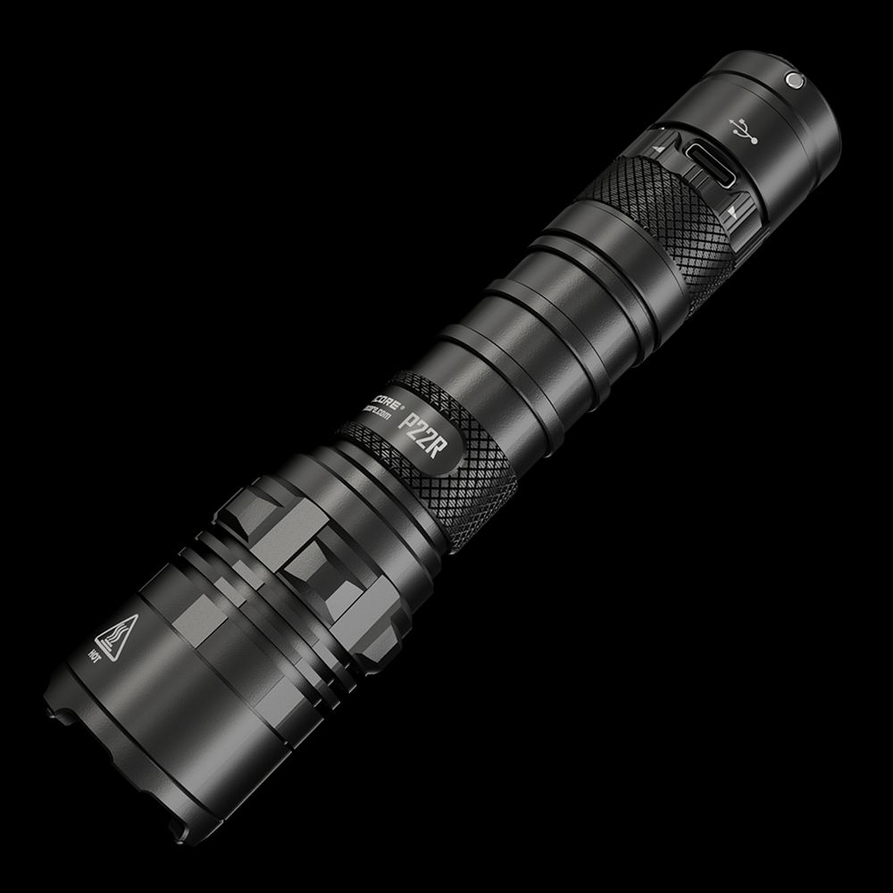 The Nitecore P22R is the ultimate high performance tactical flashlight. Utilizing a CREE XHP35 HD, the P22R emits up to 1800 lumens with a max throw of 286 yards. Designed with law enforcement and military situations in mind, this torch comes with an ultra strong stainless steel bezel made to break glass in emergencies, and a STROBE READY function.