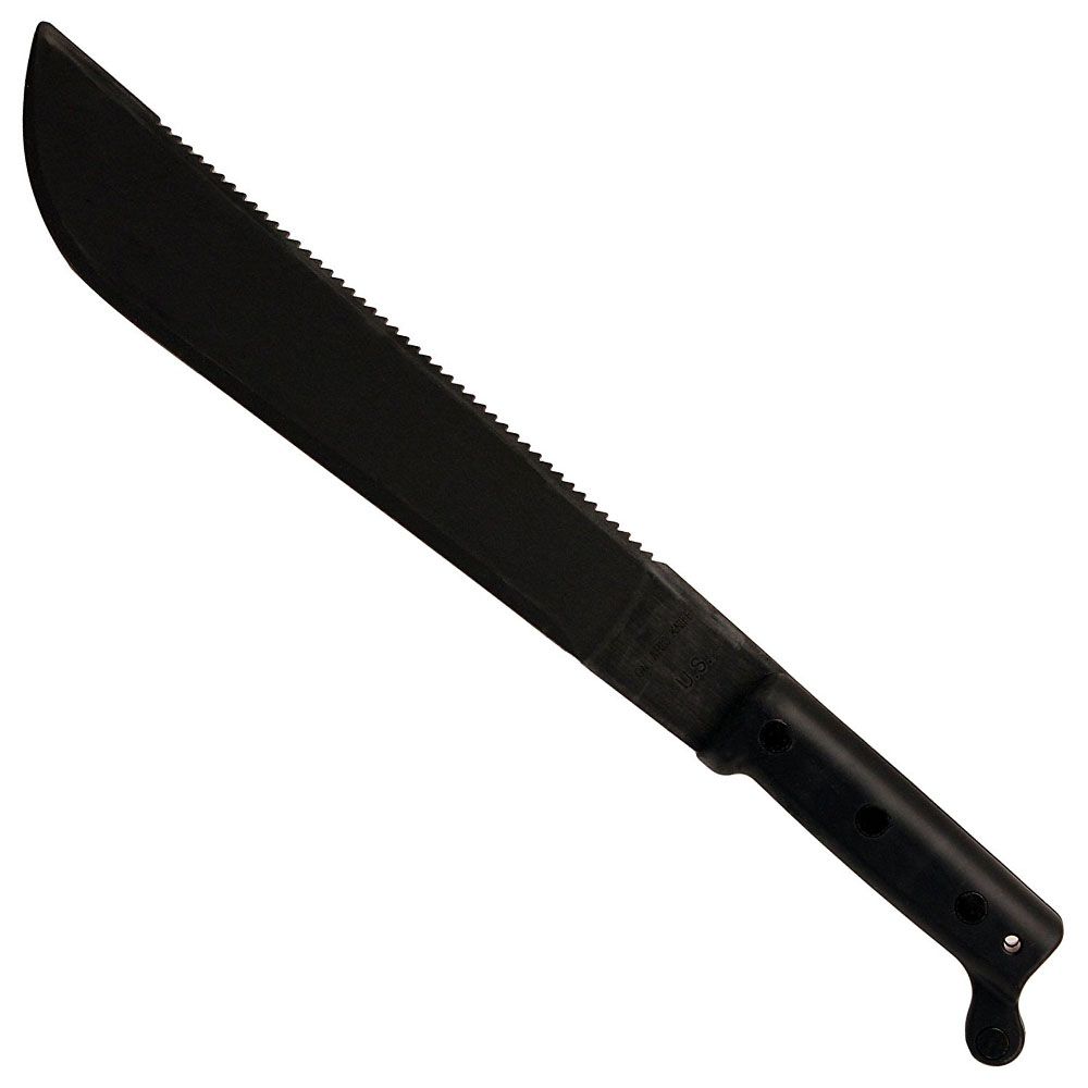 The Ontario CT2 12 Inch Sawback Machete features a 12" full tang 1095 carbon steel blade with a black zinc phosphate finish. The back of the CT2 Sawback Machete features super sharp teeth on the spine of the machete - hence "sawback" in the name.The CT2 1
