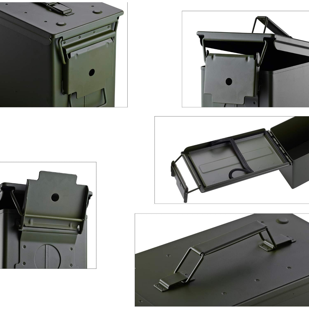 Pro Tips: Store the ammo crate utility box in a cool area and out of moisture to prevent ammunition from oxidizing which degrades the velocity of the round; The Ammo holder can is indented to accept the folding handle on the lid of your other ammo containers.