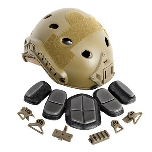Give your head the protection it deserves with the Cybergun F.A.S.T. Tactical Helmet. This PJ helmet features a customizable tactical rail and an adjustable fitting system. It is made of strong ABS plastic material and has Velcro on the inside for custom placement of foam spacers. Available in tan, black, and olive drab.