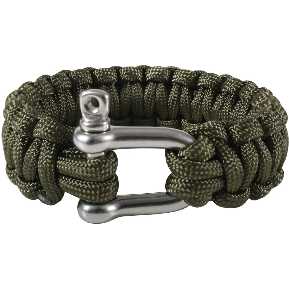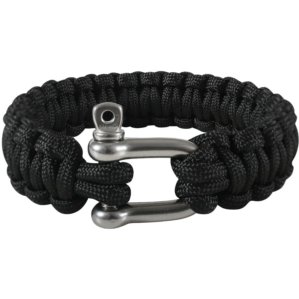 The Paracord D-Shackle Bracelet combines rugged durability with practical functionality, making it a dependable accessory for outdoor and survival use. Crafted from strong 7-strand polyester cord and secured with a stainless steel D-shackle closure, this bracelet not only serves as a stylish piece of gear but can also be unraveled to provide emergency cordage when needed. Available in multiple sizes, it’s designed to suit different wrist measurements while maintaining a secure, adjustable fit.