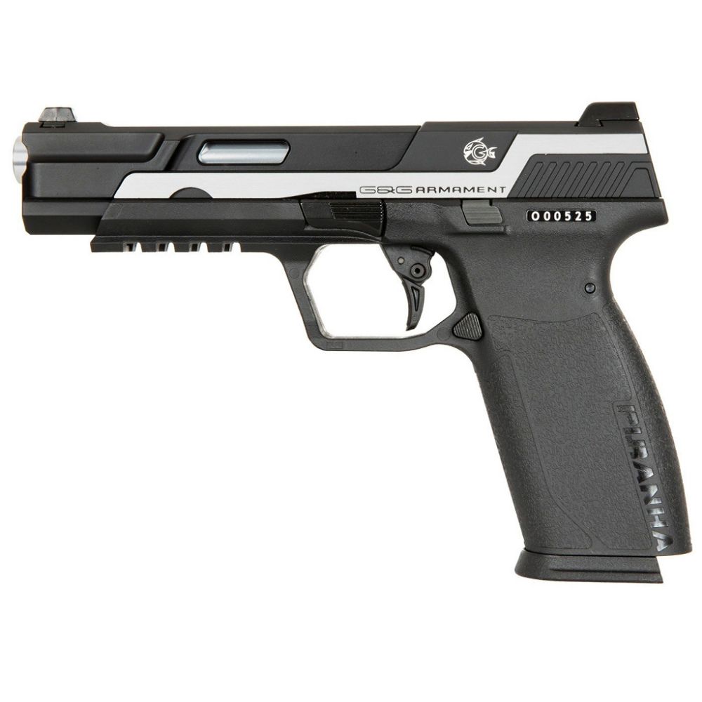 Take the fight to the enemy with the G&G Piranha Mk1 GBB Pistol. This unique design from G&G combines the performance you expect with a futuristic aesthetic sure to please any airsofter. A Crisp trigger and mighty blowback give you a wonderful experience while shooting. Adjustable hop up inside of this behemoth guarantees great range and accuracy if you're a good shot!