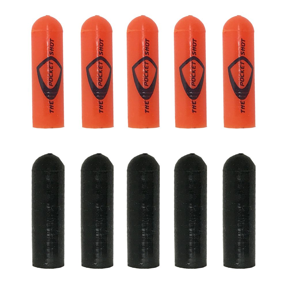 The Arrow Nock Caps allow you to fire arrows from your Pocket Shot. The hard plastic cover provides a firm gripping point and protects the Pocket Shot pouch from the sharp nock. This package of ten nock caps comes with 5 orange and 5 black.