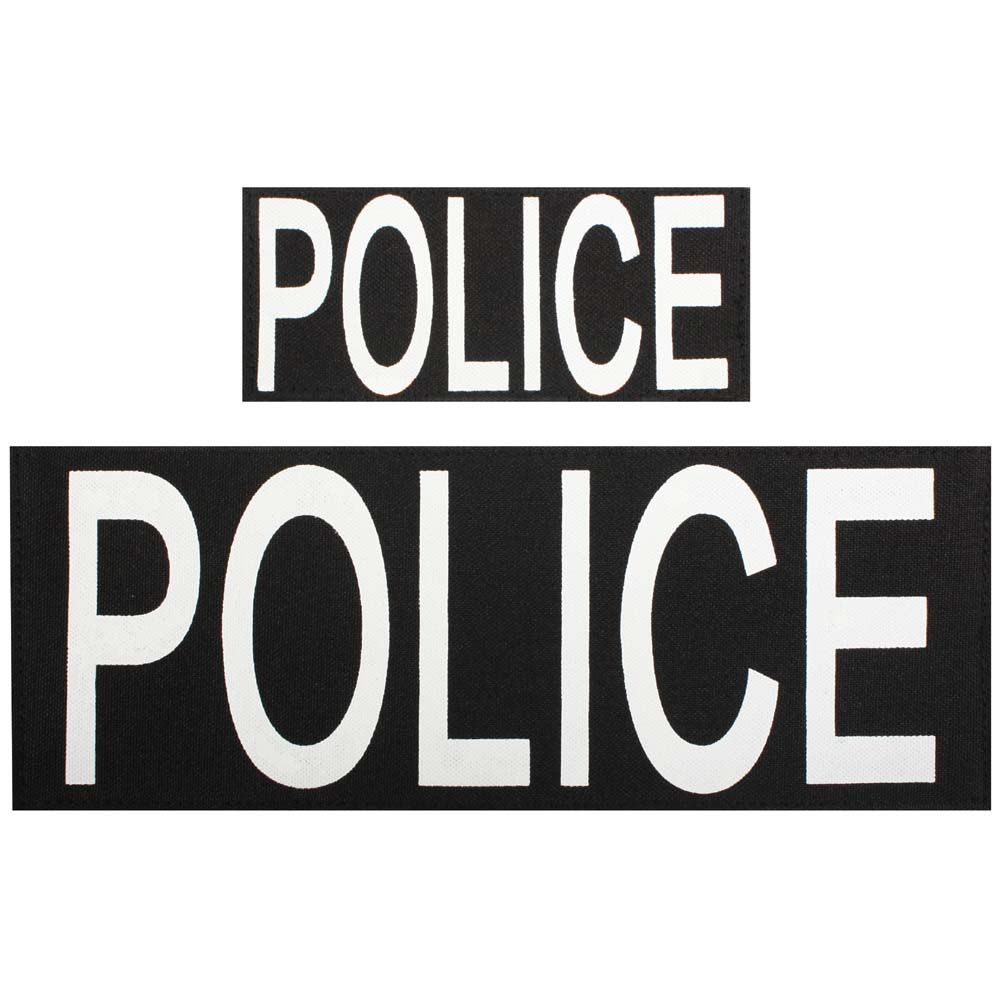 Be the side of the law with this set of police patches. These polyester patches come in two sizes: 10.16 cm (4 in) x 27.31 cm (10.75 in) and 6.35 cm (2.5 in) x 14.61 cm (5.75 in). Easily attach them to your clothing using the Velcro or simply sew it on.