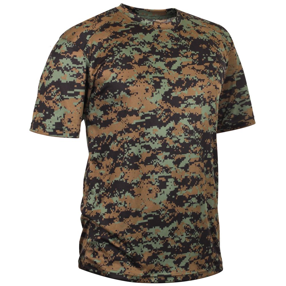 100% Polyester Performance T-Shirt brings a military style to sports and active wear. The camouflage performance t-shirts are moisture-wicking to keep you dry while you train. They are also great for screenprinting.