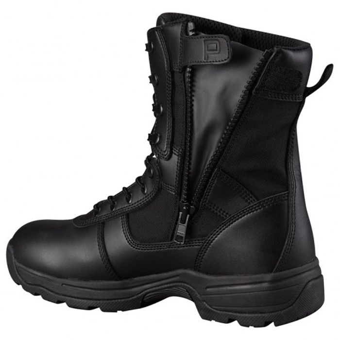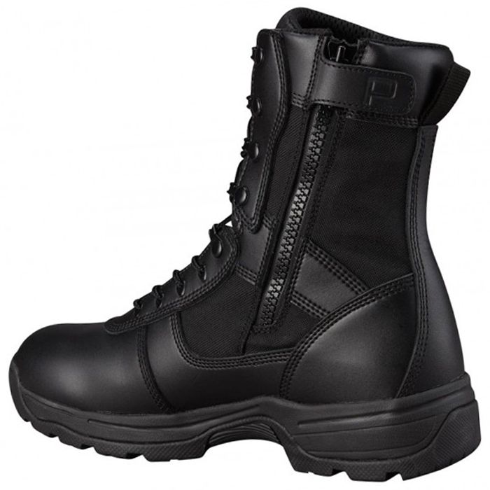 Your feet are one of the most important parts of your body, so treat them properly with the Propper 8 Inch Mens Side Zip Boot. These black tactical boots provide comfortable protection for your feet with their high ankle support and odor eliminating anti-bacterial lining. The HydroGuard waterproofing system keeps you dry in wet conditions.