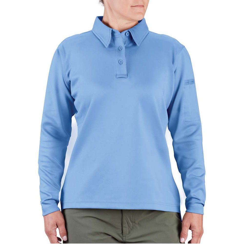 Designed for women, the Propper Women's Long Sleeve I.C.E. Performance Polo is designed to keep you cool, dry and comfortable on the job. Innovative wicking technology is built directly into the fabric, helping it dry 125% faster than cotton and 30% faster than polyester. Breathable mesh underarms help you maintain a professional appearance in warmer weather. Other features include concealed collar stays and two shoulder mic clips