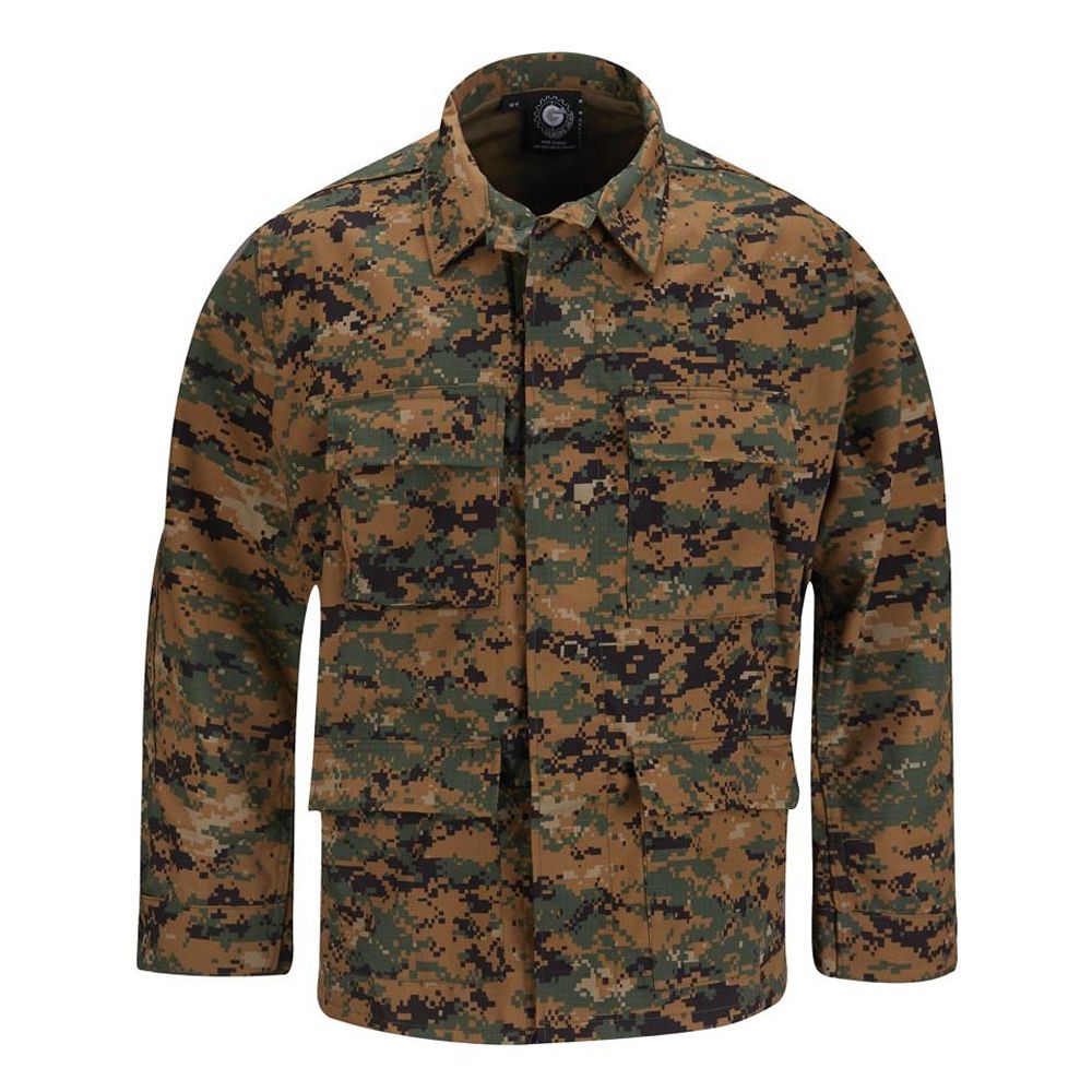 The Genuine Gear BDU Coat has a military-inspired construction and authentic fit. This coat features four front cargo pockets, a covered button front, and fused pocket flaps and collar for a long-lasting professional look. Double-reinforced elbows and felled seams ensure maximum durability on high stress points.