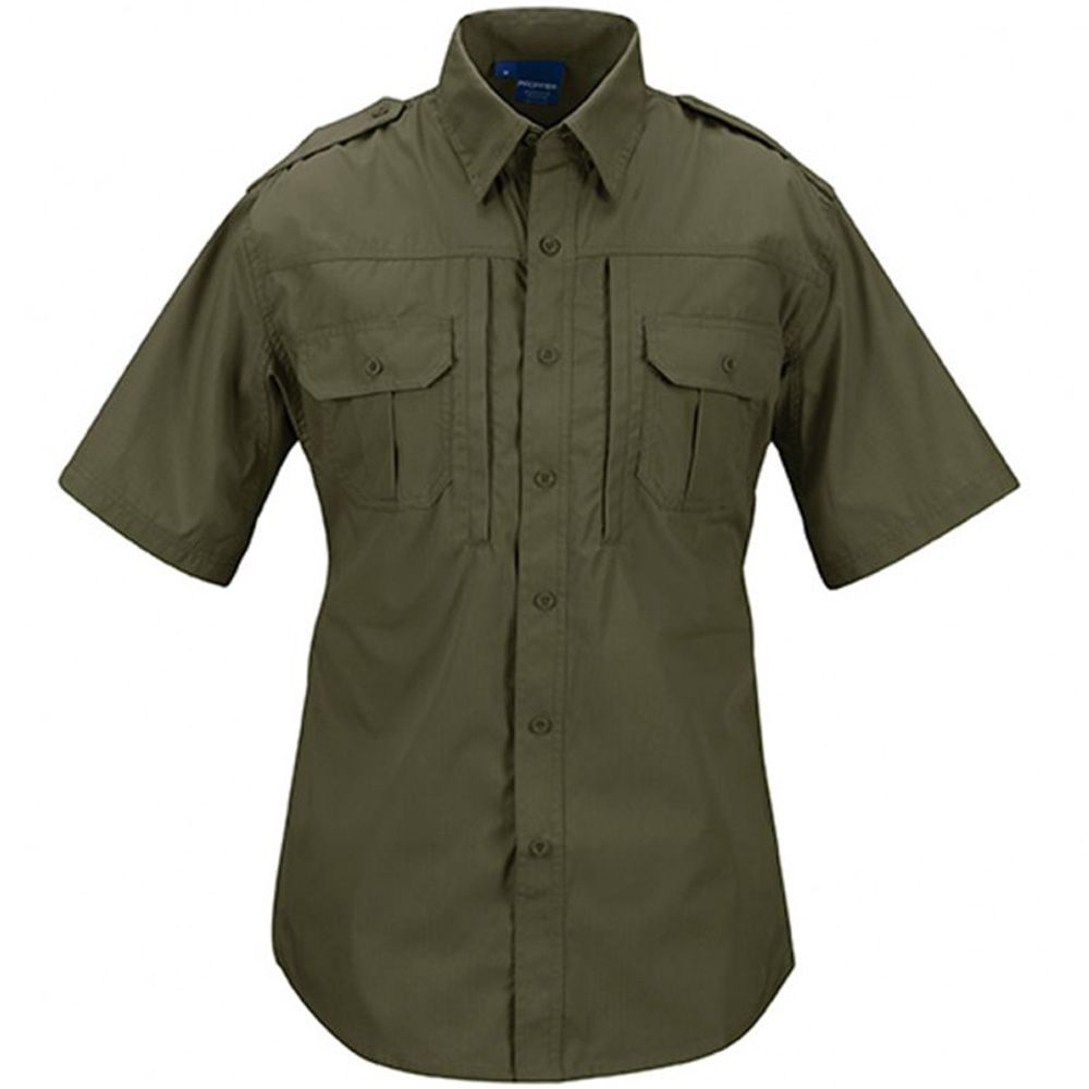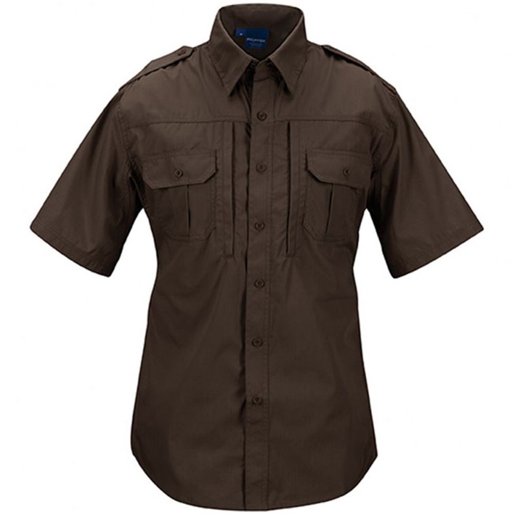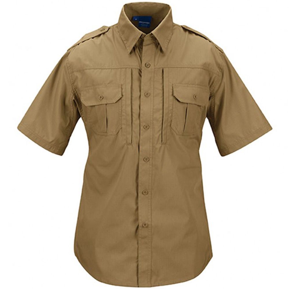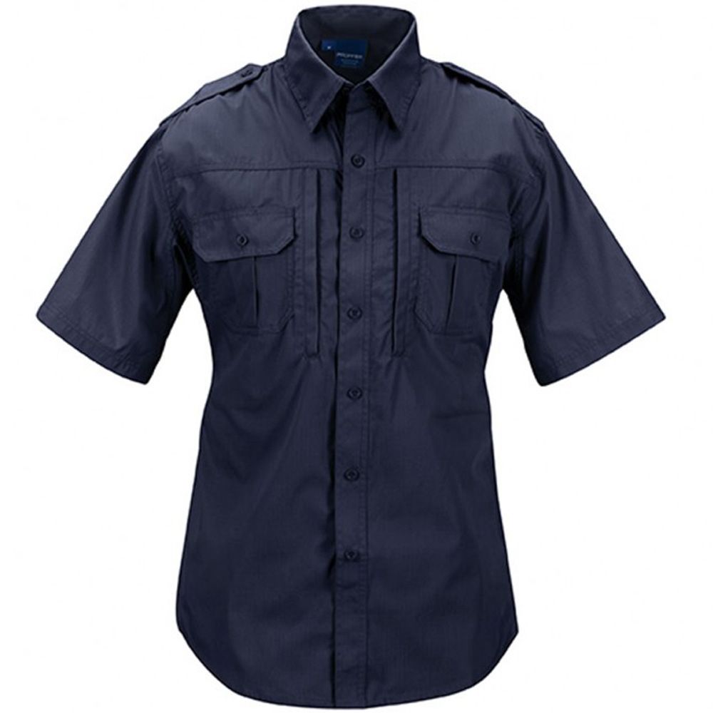 Stand up to the task with the comfortable, durable and professional Propper® Men’s Short Sleeve Tactical Shirt. On or off duty, its lightweight ripstop material coated inTeflon fabric protector will keep you cool while it resists fading, shrinking, stains and wrinkles.The mock button-up front gives you a professional look while concealing your zipper for quick access to a vest or weapon. Additional features, including a longer tail in back, two zippered chest pockets and gusseted underarms preserve the look without hindering your storage capacity or range of motion. Build a uniform with our Propper® Tactical Pant.