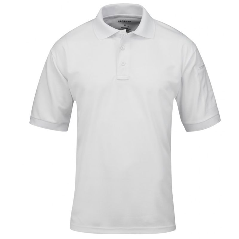 An all-time favourite among military and law enforcement officers, the Propper Uniform Polo T-Shirt offers comfortable fit and tactical features. It comes standard with a mic/sunglasses loop at the center placket and a traditional two-channel pen pocket on the sleeve. Since 'no-curl' inserts are hidden inside the collar, it won't fold, roll or crease. This solid-coloured t-shirt ensures a professional appearance, for any occasion.