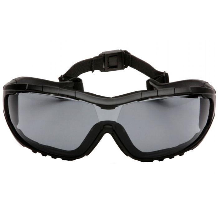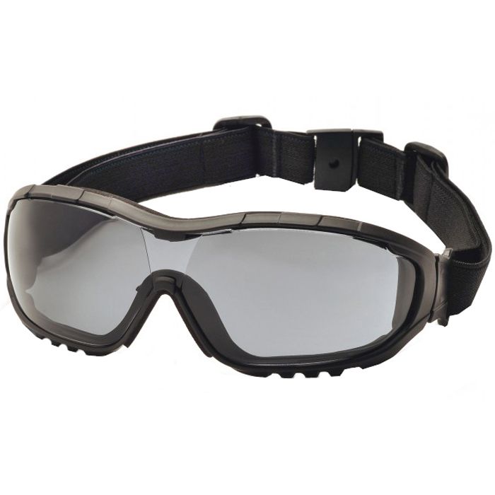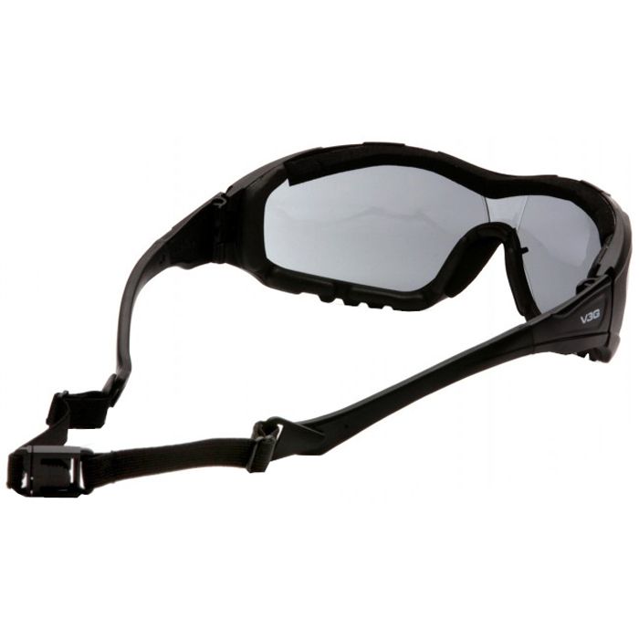 Lens and frame vented to increase air flow. Interchangeable temples and headband included with each pair of V3G. Headband and temples feature ratchet adjustment for perfect fit, features quick fit retainer. Flame resistant foam padding forms perfect seal to keep out dust and airborne particles. 9 base curved lens provides full side protection. Scratch resistant polycarbonate lens provides 99% UVA/B/C protection. Optional V3G Rx Insert can be added to prescription models of the V3G to help with visual impairment.