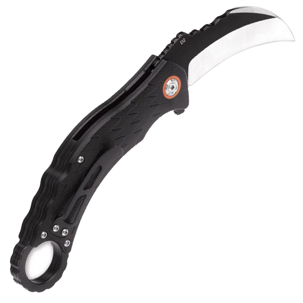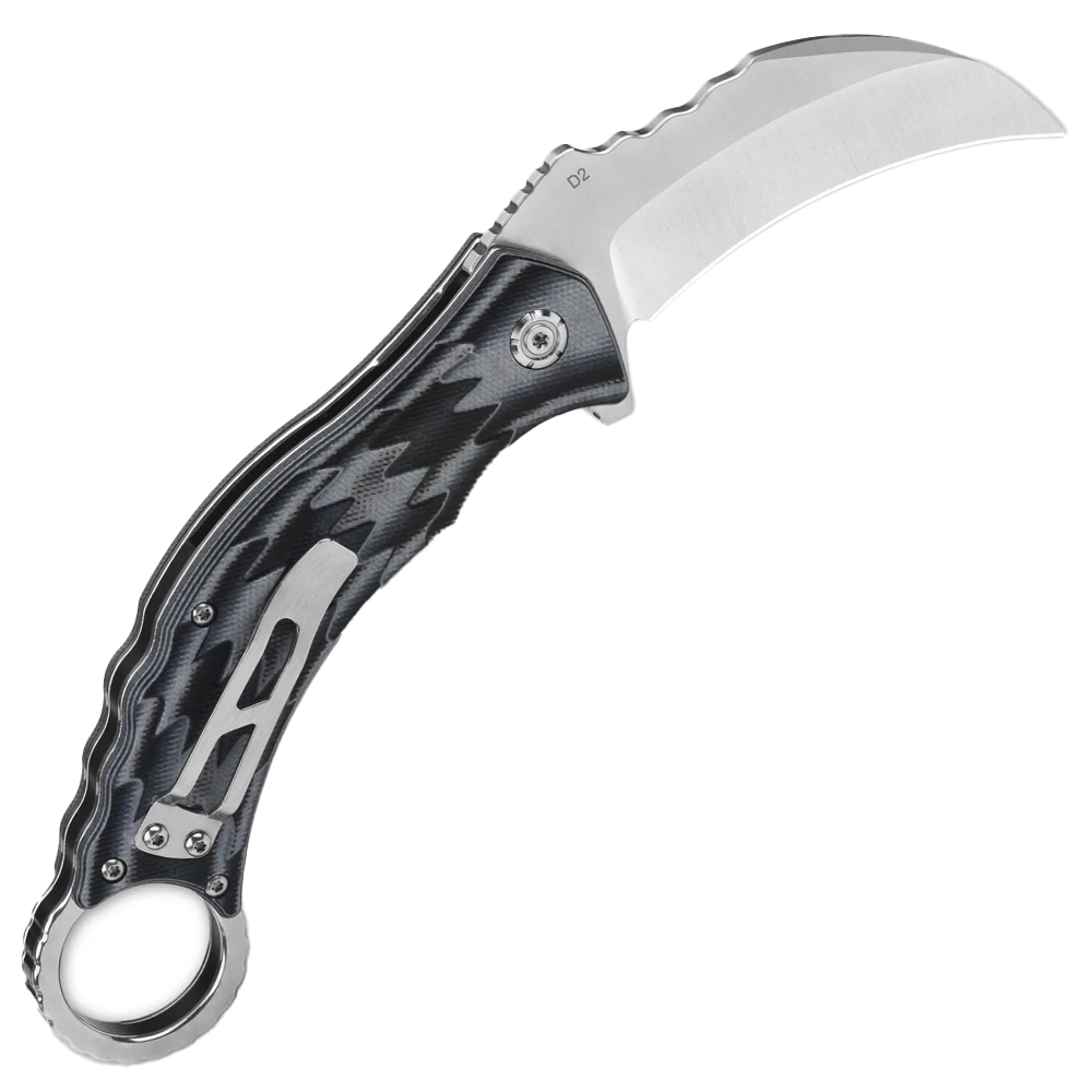 The Eagle Karambit Flipper folding knife is crafted for those who require a dependable tool in challenging situations. Featuring a D2 steel blade with a satin finish, this knife ensures excellent cutting performance and toughness.