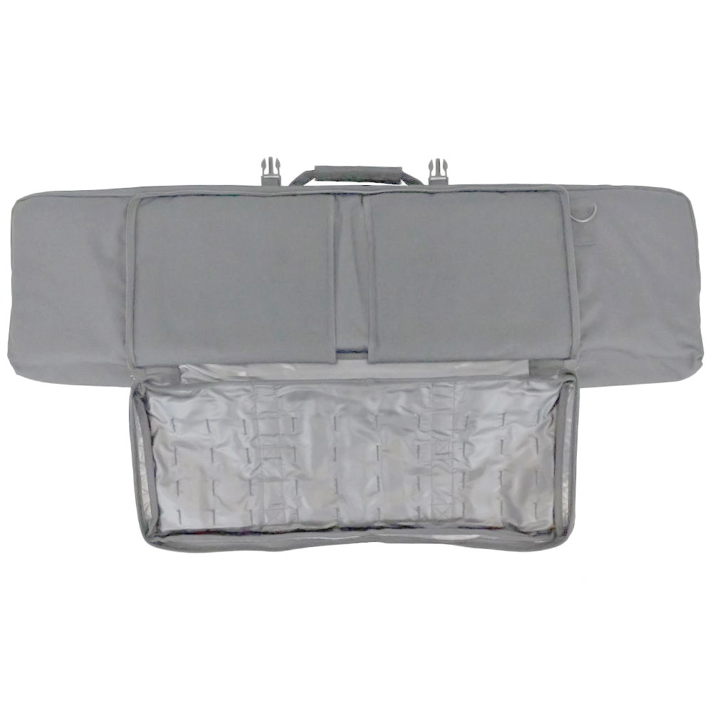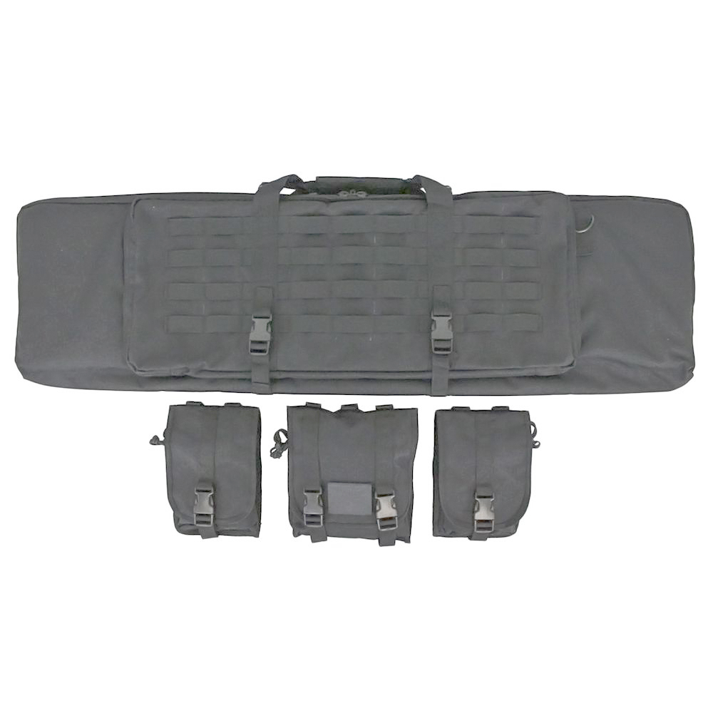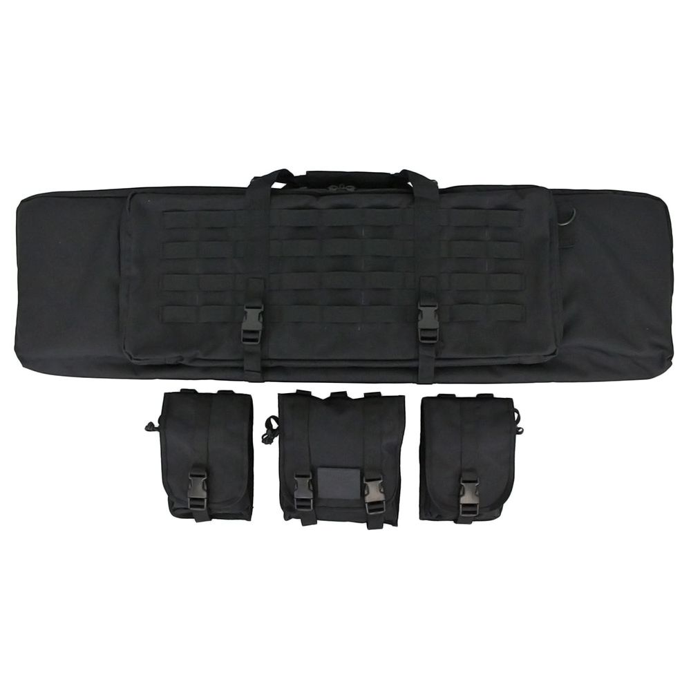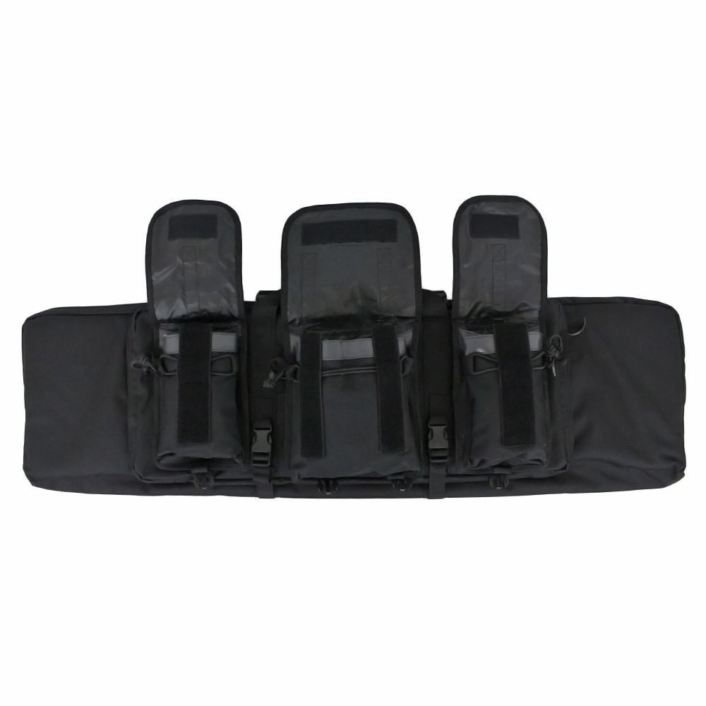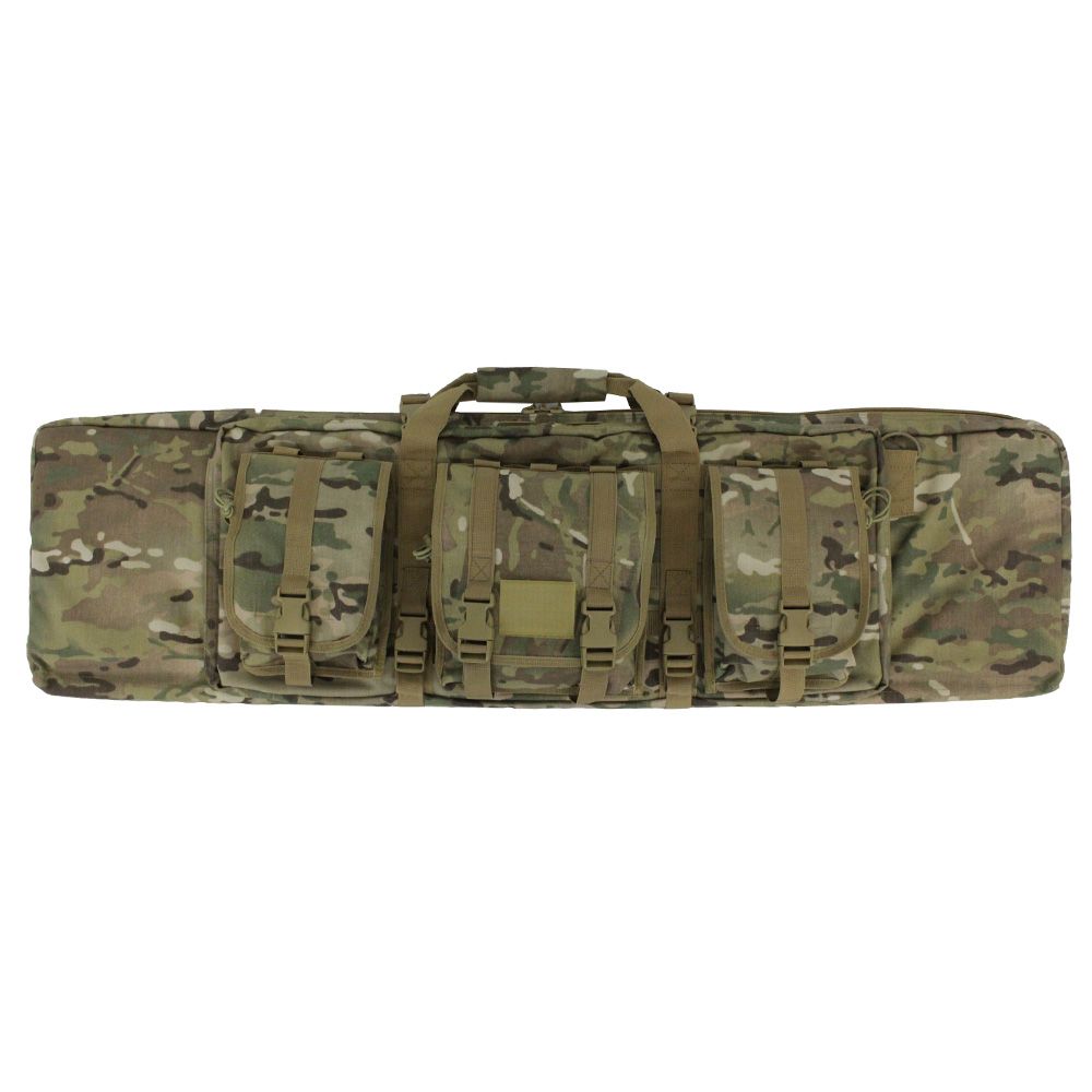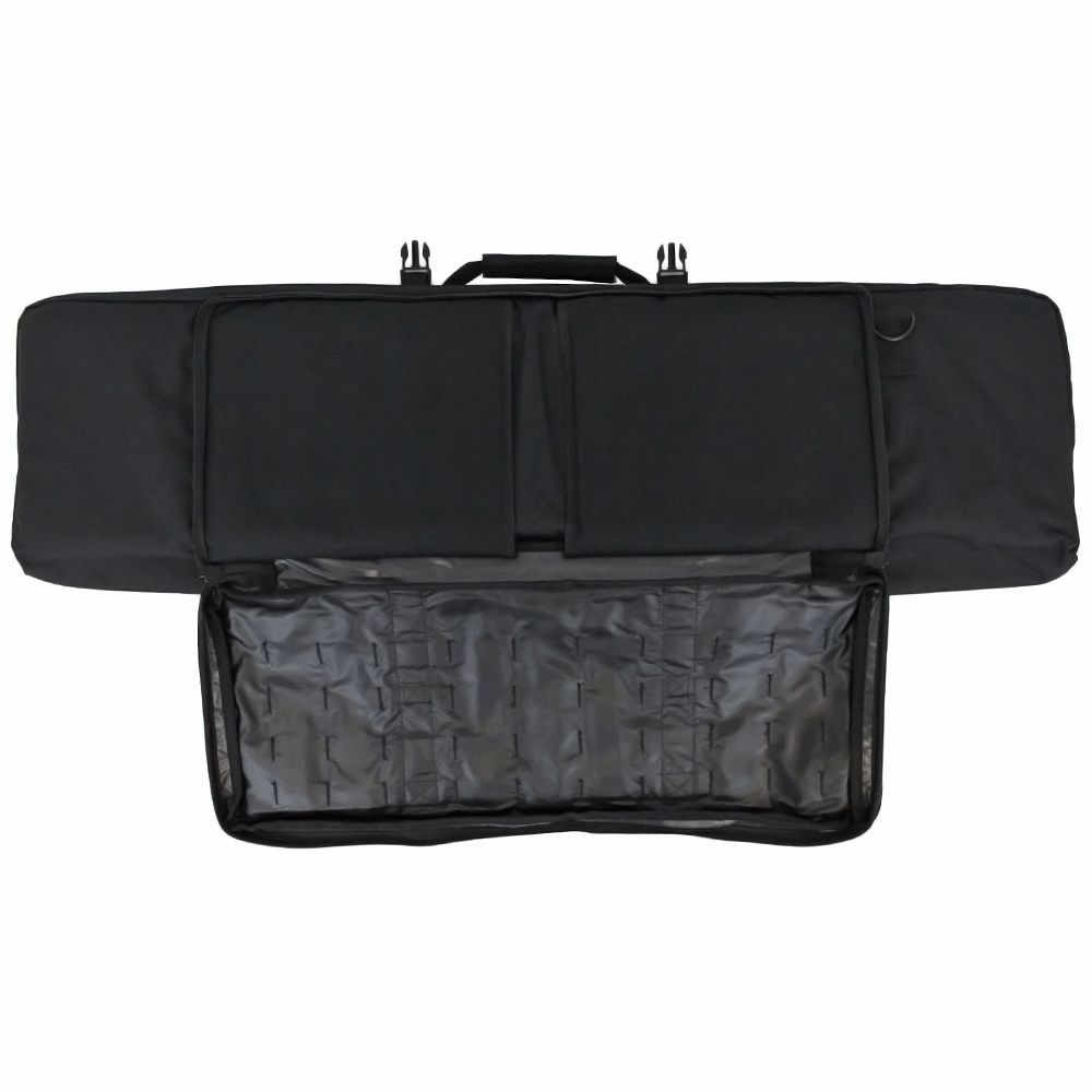 Take the hassle out of weapons transportation with this Raven X MOLLE Carbine Case. The main compartment is shielded with a thick wall of padding and lined with hook and loop straps and retention pockets to secure any rifle up to 42” in length. The front pocket has two tight sleeves for sidearms like pistols or SMGs. The front MOLLE panel comes equipped with three modular pouches for additional gear. Measures 43-inches x 13-inches x 3-inches.