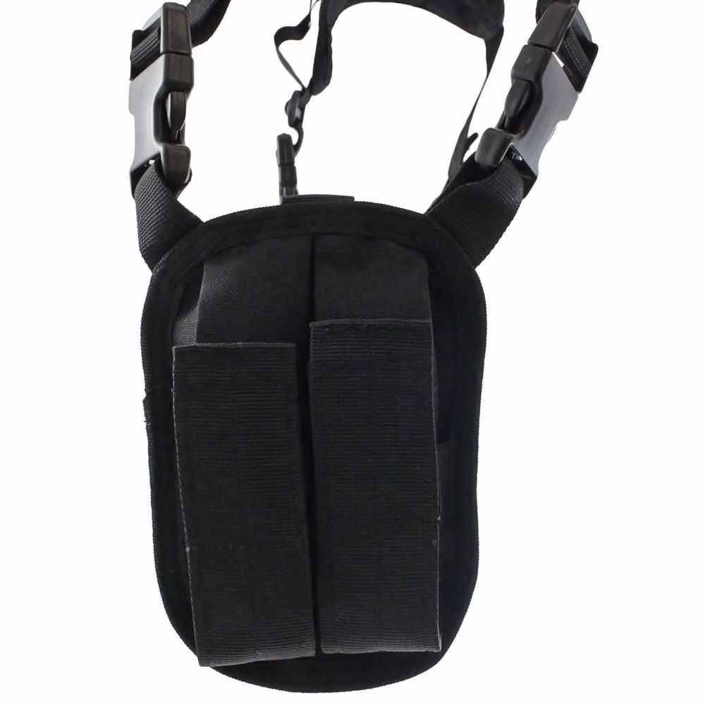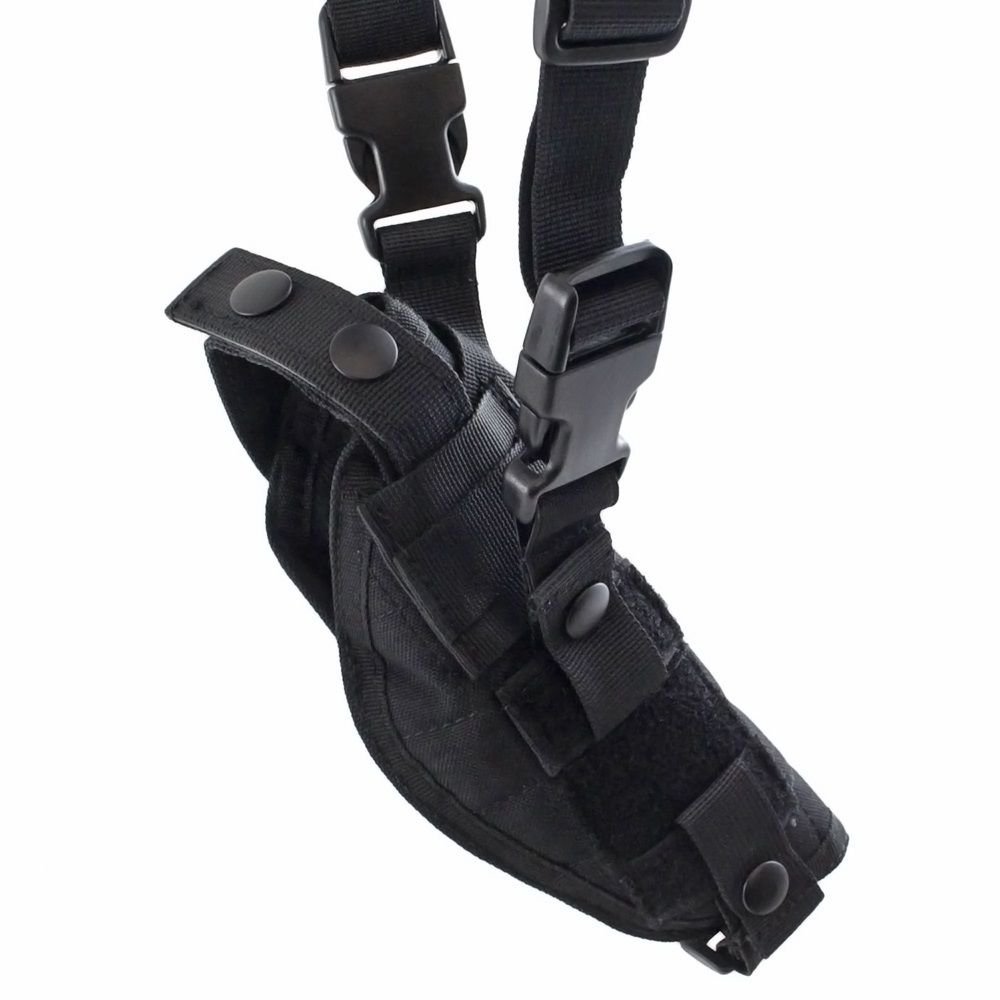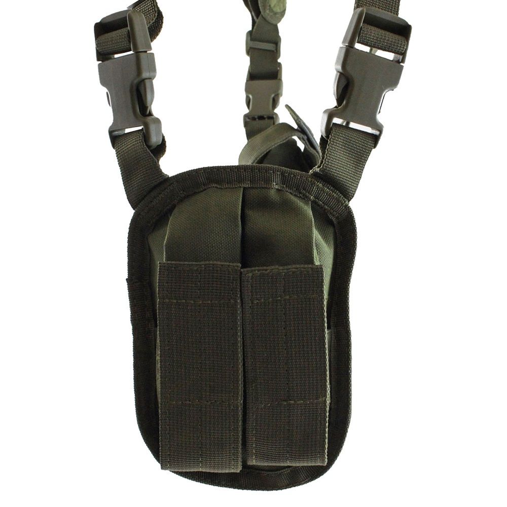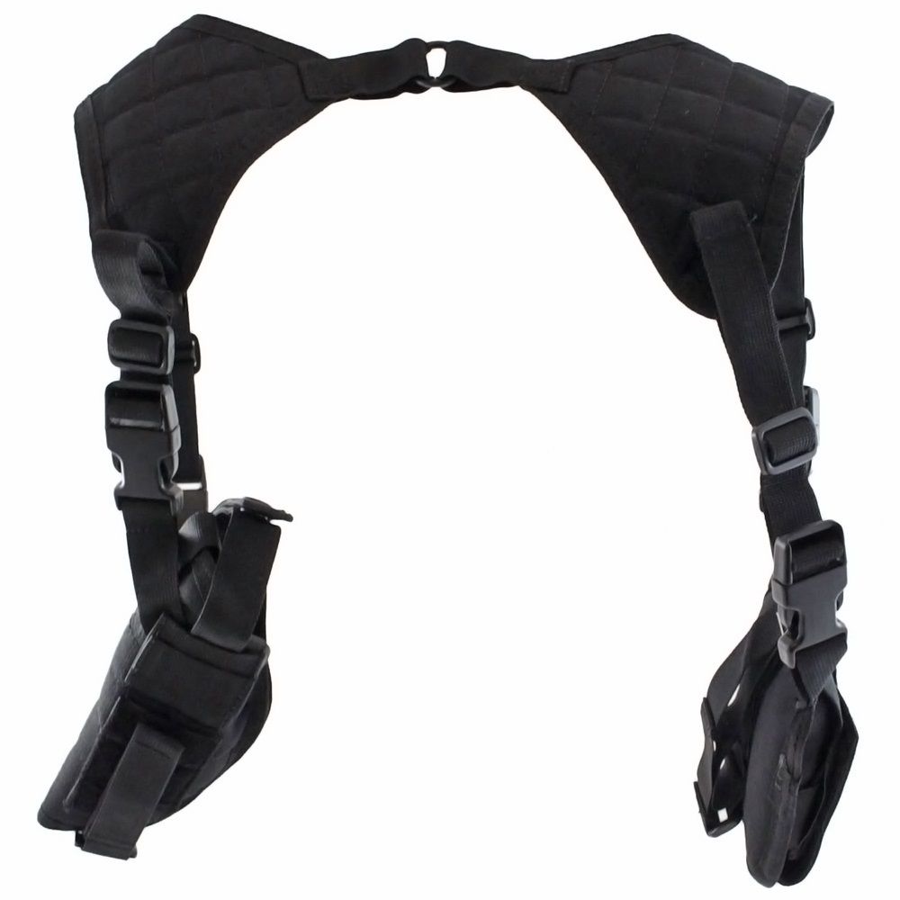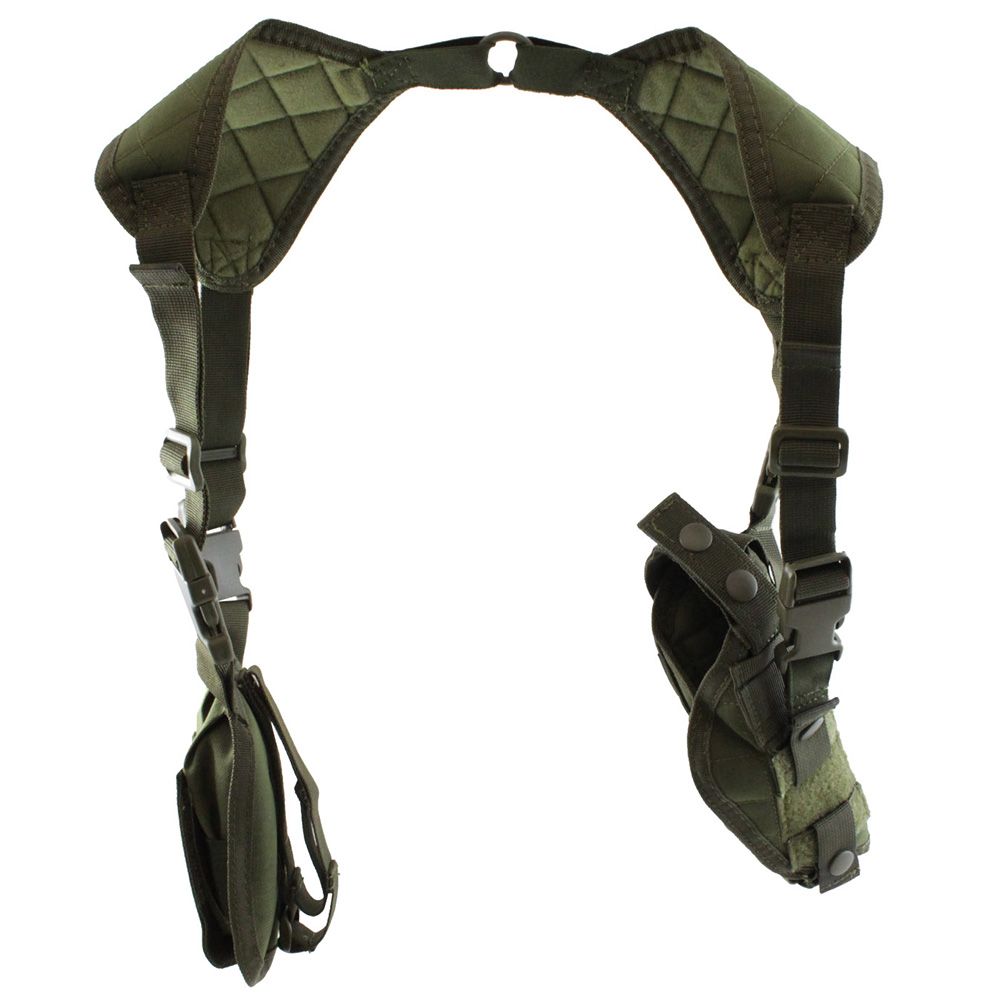 This Raven X vertical shoulder holster is a fully adjustable, ambidextrous rig that can carry any medium or large pistol and two spare magazines. Constructed from durable nylon canvas with felt shoulder padding for comfortable carry in the field.