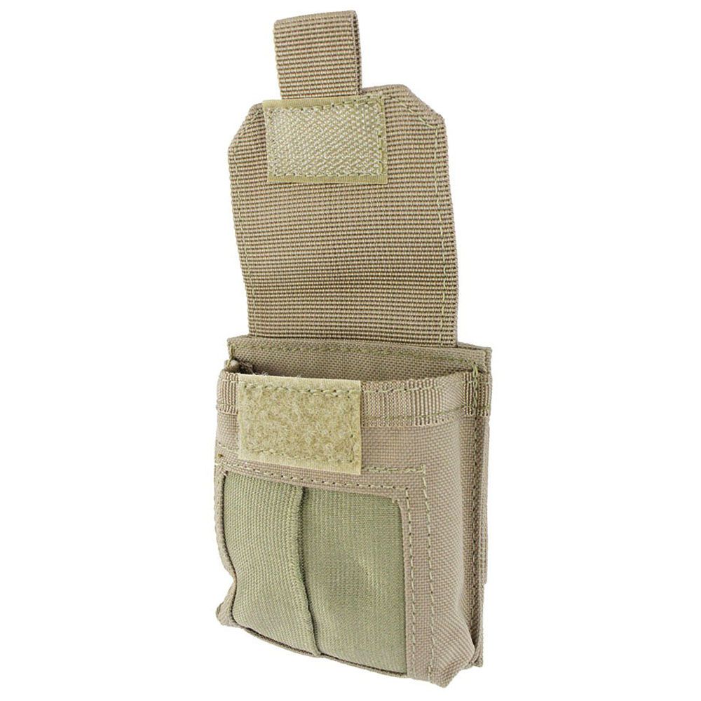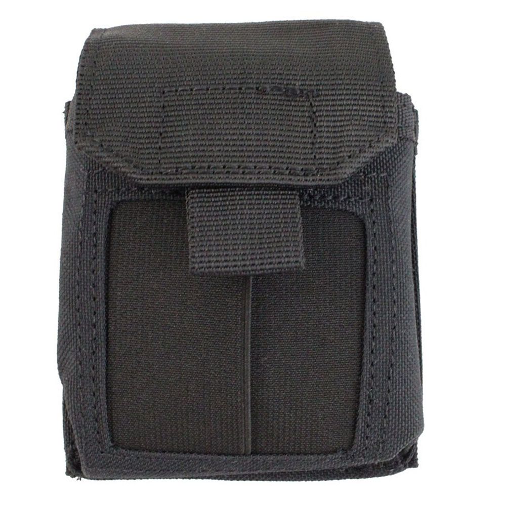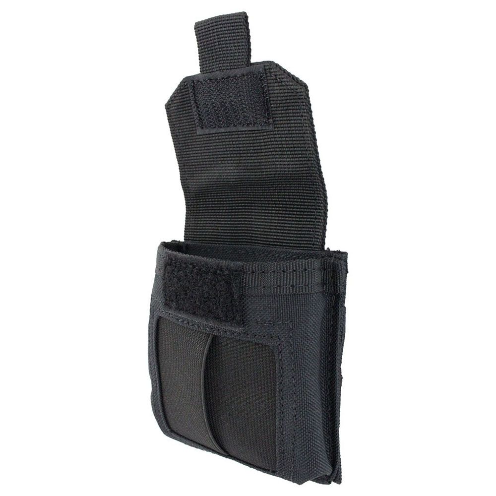 This Raven X glove pouch is ideal for EMT, police, or military personnel. The compartment can store several pairs of disposable gloves and provides instant access in an emergency situation. In addition to the hook and loop cover, there is a double elastic pull-through opening on the front. Pouch measures 4" x 3.5" x 7.5".