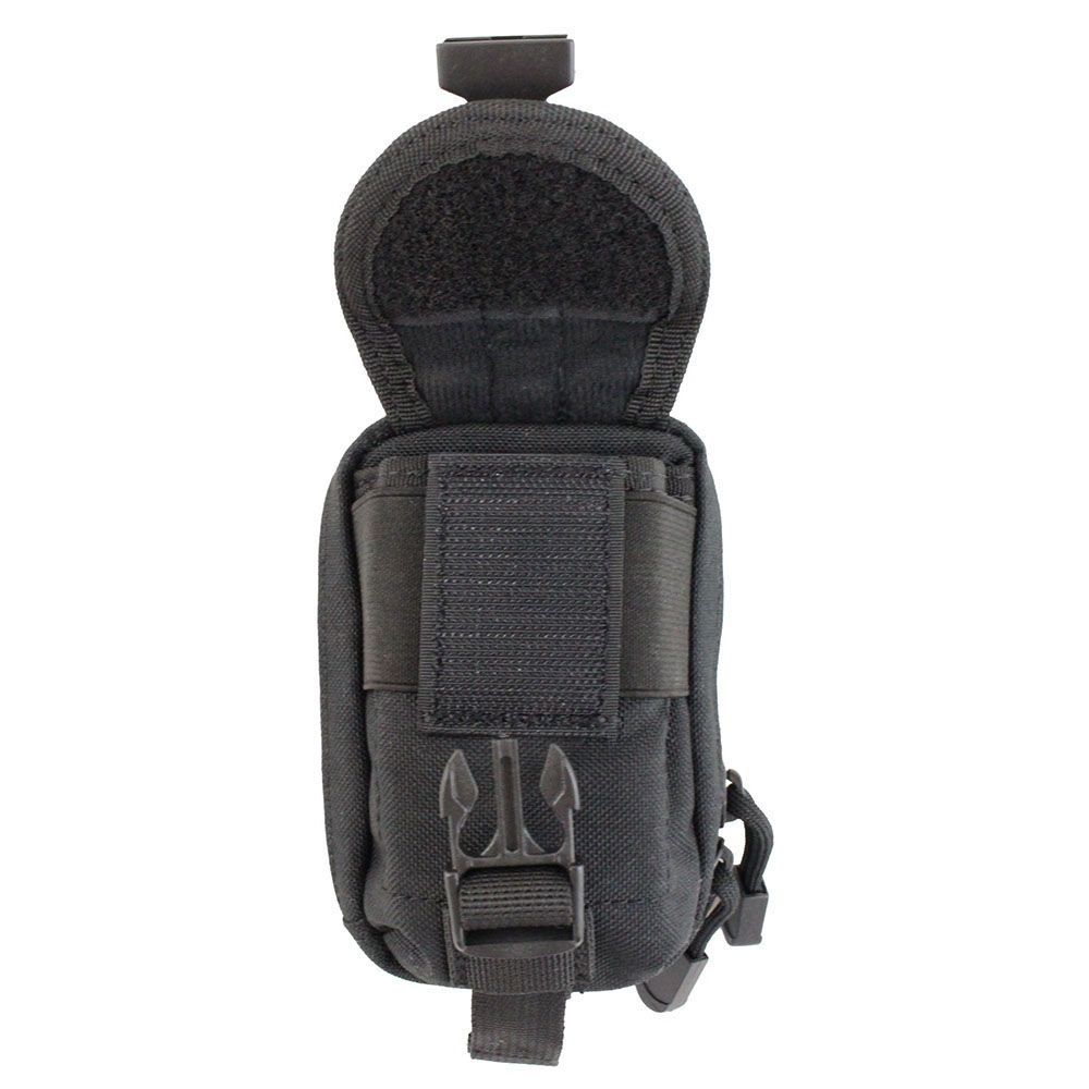 This versatile tactical pouch is ideal for everyday carry gadgets and tools. The double-zipper main compartment is padded and felt-lined to protect delicate electronics like phones, cameras, or MP3 players. A compression buckle on the front allows you to tighten and secure your gear during transport. Pouch measures 5” x 3” x 1.5”.