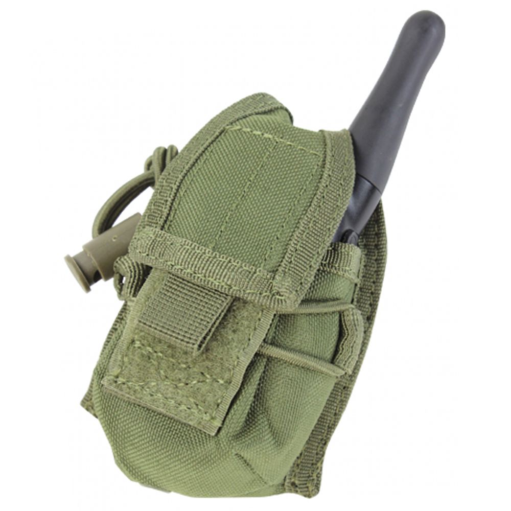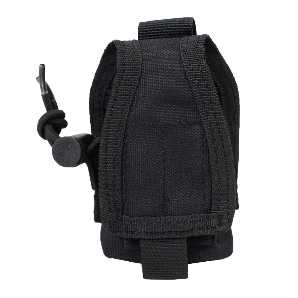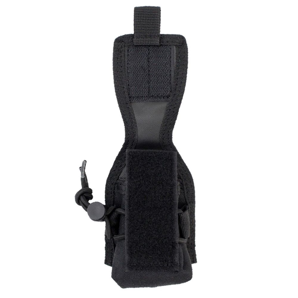 Communication is key in the battlefield. Stay in the loop and keep your communication and navigation devices on hand with this tactical radio pouch from Raven X. The compact pouch is designed to hold one small radio, flip phone, or GPS device. Features include MOLLE webbing, a hook and loop closure, and bungee drawstring with cord lock. Measures 2.75" x 4.5".