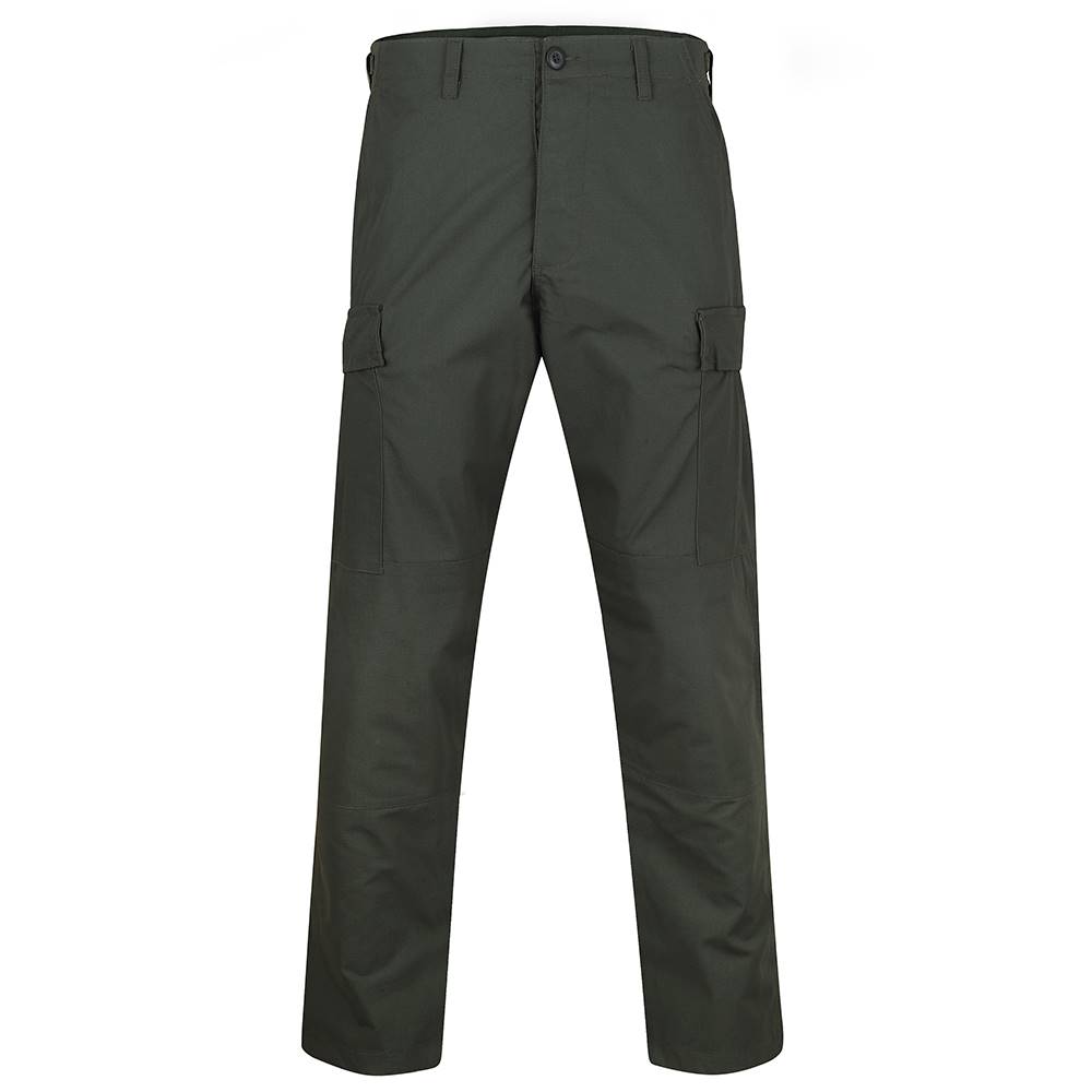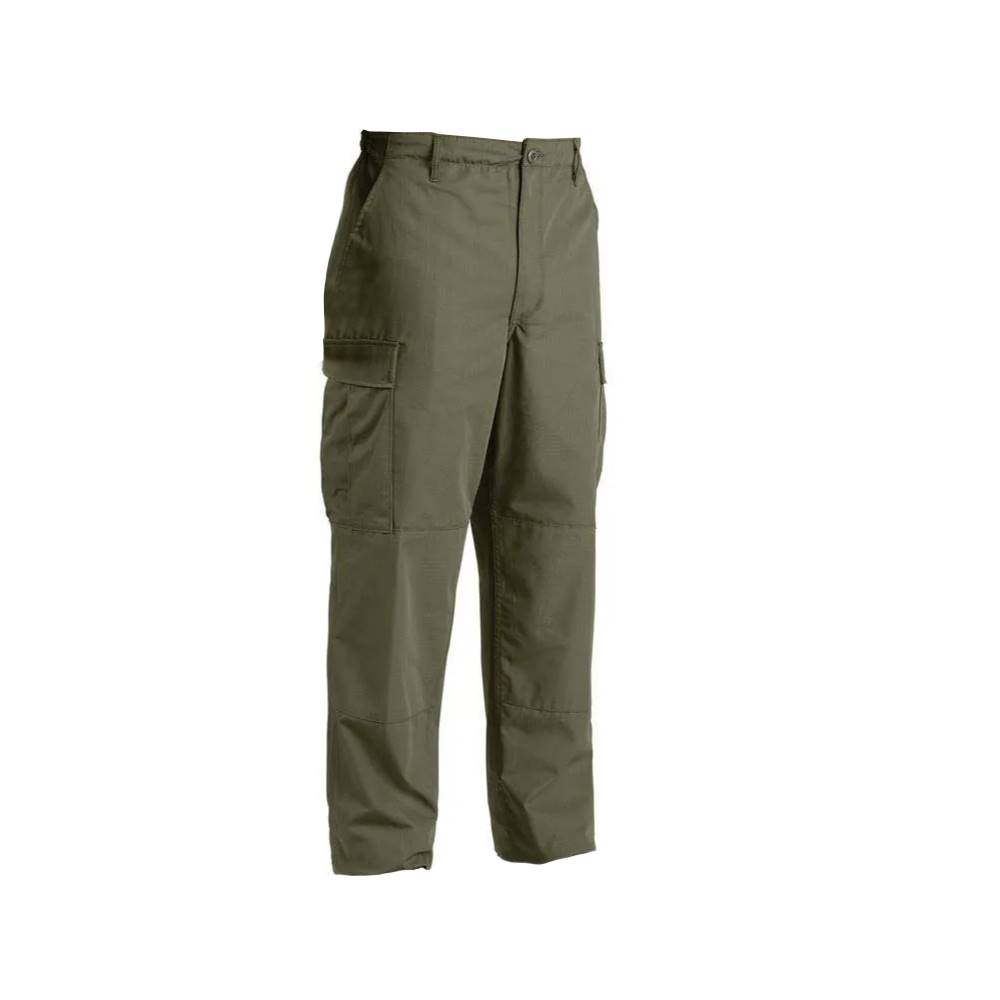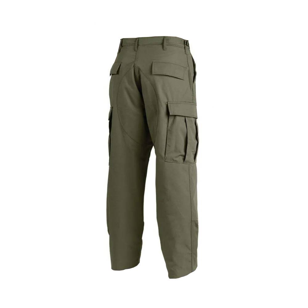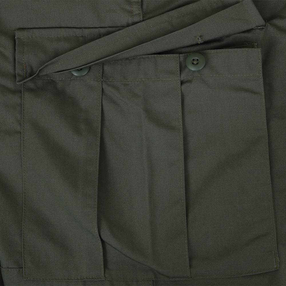 For a great looking uniform, pair it up with our BDU 100% Cotton Ripstop pant. These rugged pants offer an authentic military cut in a very comfortable and durable Battle Rip fabric. They sport six military-grade pockets, four of which designed with button flaps and the seat and knee come double-reinforced as well with felled seams to ensure maximum durability on high stress points. The waist tabs are fully adjustable for a perfect and secure fit.