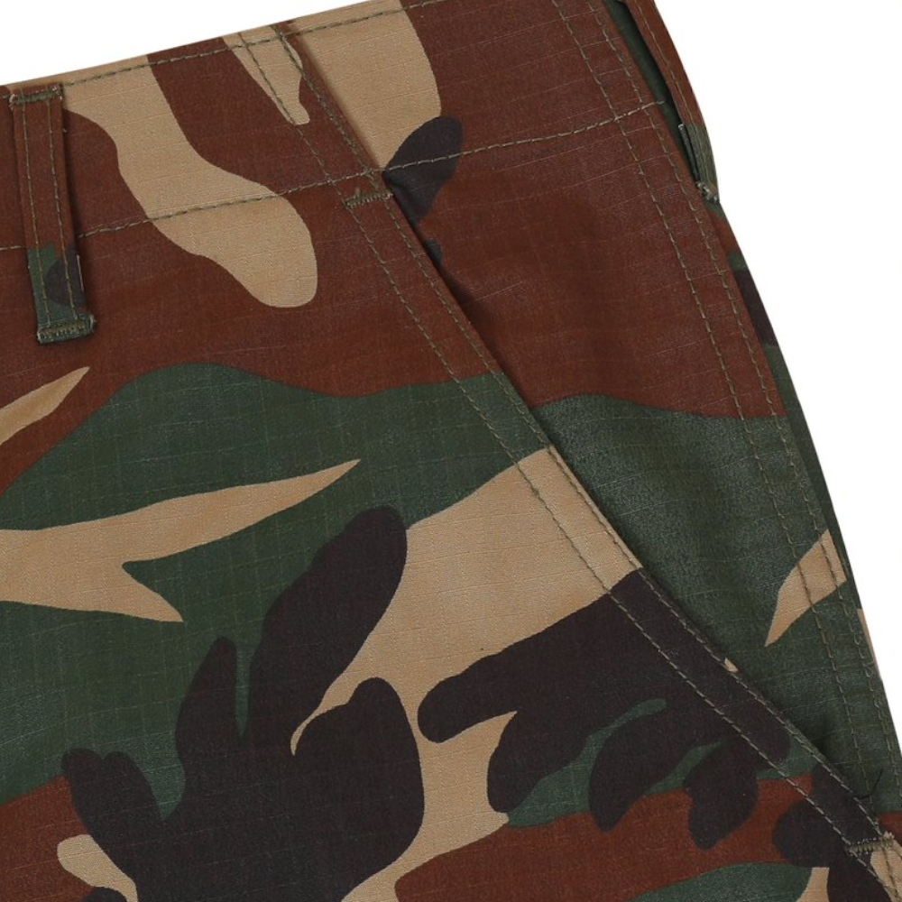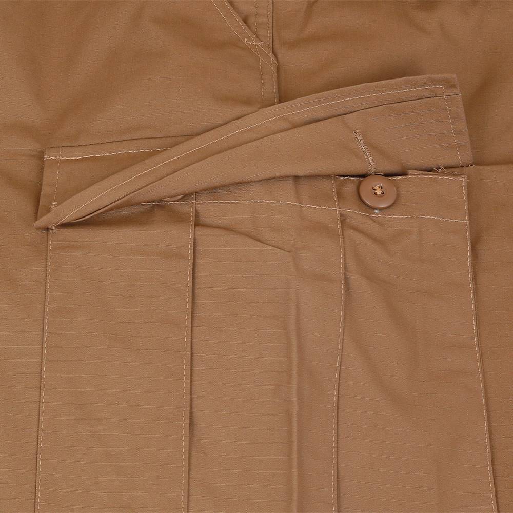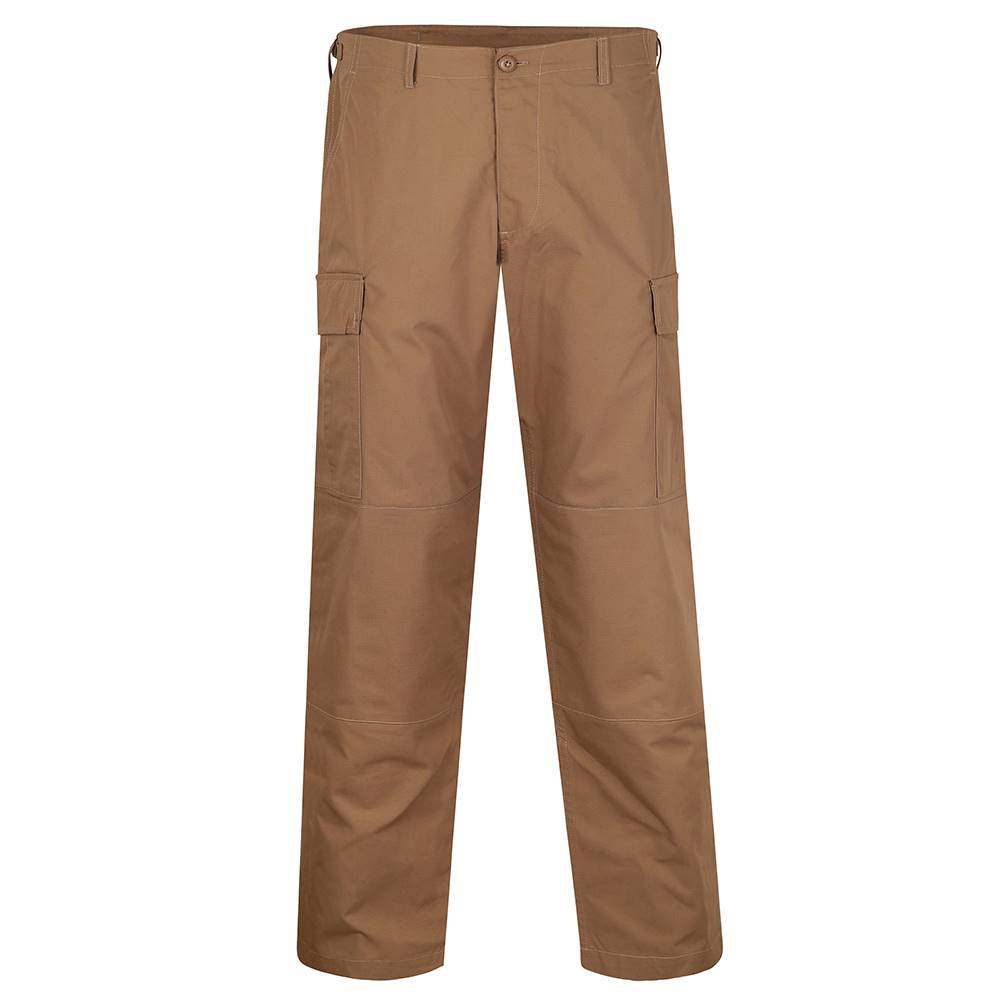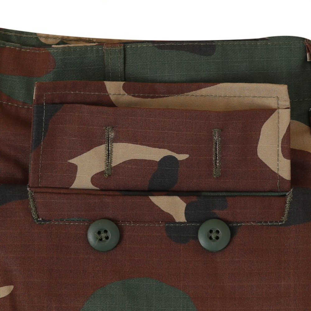 For a great looking uniform, pair it up with our BDU 100% Cotton Ripstop pant. These rugged pants offer an authentic military cut in a very comfortable and durable Battle Rip fabric. They sport six military-grade pockets, four of which designed with button flaps and the seat and knee come double-reinforced as well with felled seams to ensure maximum durability on high stress points. The waist tabs are fully adjustable for a perfect and secure fit.