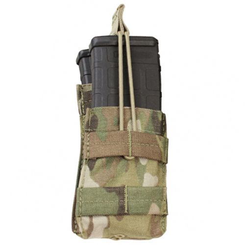 This Raven X mag pouch can carry two M4 or M16 magazines in a space efficient stack. Built from durable 1000D nylon with a bungee retention cord, MOLLE webbing, and PALS back straps. Front pocket measures: 4.5" x 3" x 1". Back pocket measures 5.75" x 3" x 1".