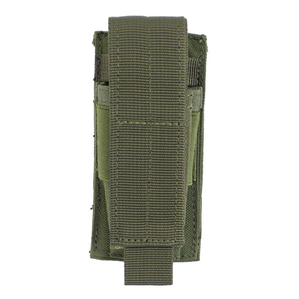 This Raven X mag pouch can carry a single pistol magazine. Built from durable nylon canvas with a hook and loop fastener, drainage grommet, and PALS back strap. Pouch measures 4" x 2.5" x 1".