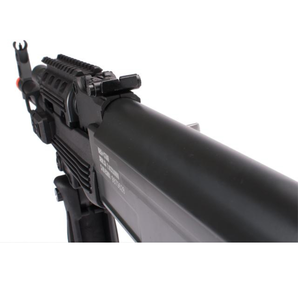 The Red Star Full Metal 47RIS Airsoft rifle is a remarkable replica of the iconic AK-47, renowned for its rugged design and reliability. This airsoft version captures the essence of the original while offering enhanced tactical capabilities. Constructed with full metal components, it exudes durability and realism. The 47RIS variant features a rail system (RIS) that allows players to attach various accessories, such as optics, grips, and lasers, for customization and improved handling. Its electric-powered operation ensures consistent firing, and the adjustable stock accommodates different shooting styles. With its blend of authenticity and versatility, the Red Star Full Metal 47RIS Airsoft rifle is a favored choice among airsoft enthusiasts seeking a classic and adaptable option for engaging in dynamic and immersive airsoft battles. The RedStar AK RIS Metal features a full metal body, rail adapter system, ergonomic pistol grip, and a metal trigger assembly. The body comes in a rich black for a more modern look. A high-cap magazine, battery, and charger complete the package.