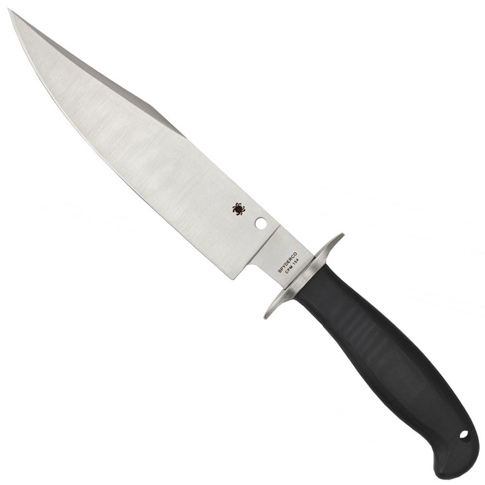 Spyderco founder Sal Glesser has always liked Bowie Knives, and his Respect design pays tribute to the classic American Bowie Knife while expressing it with state-of-the-art modern materials. The heart of the design is its blade, which is painstakingly crafted from CPM-154 stainless steel. An impressive .300-inch (7.6mm) thick at the spine and ricasso, the Respect’s broad, satin-finished blade is just over 1.5 inches (38.1mm) wide and features a full-flat grind for both strength and superior edge geometry. The long, straight, double-beveled swedge on the back of the blade is unsharpened, but ensures an exceptionally acute point.