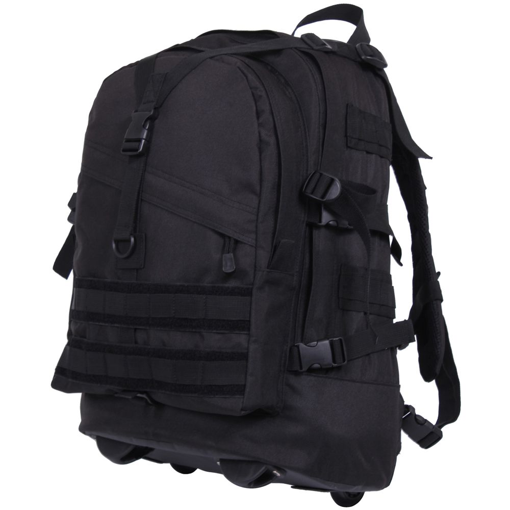We took Large Transport Pack and gave it wheels! Expect to see the same high quality backpack and features with the added benefit of the telescoping aluminum rod and wheels. We've padded the back of this tactical pack for added comfort but kept popular features, like Mollecompatibility & hydration bladder compatibility.