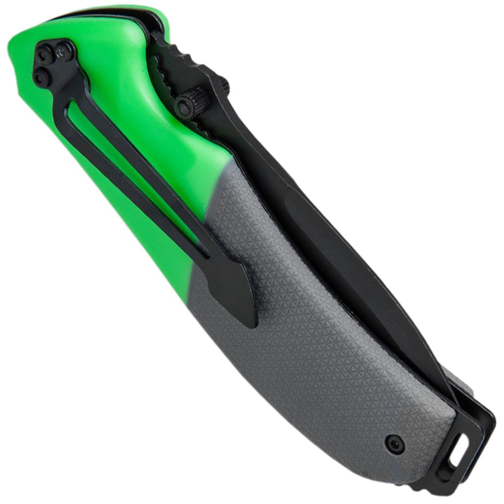 The Schrade Three Piece Outdoor Set includes a folding knife, fixed blade knife, and an axe. This combo set includes a 9.8" fixed model with a 4.5" blade, a 10.5" axe, and an 8.2" folder with a 3.2" partially serrated blade.