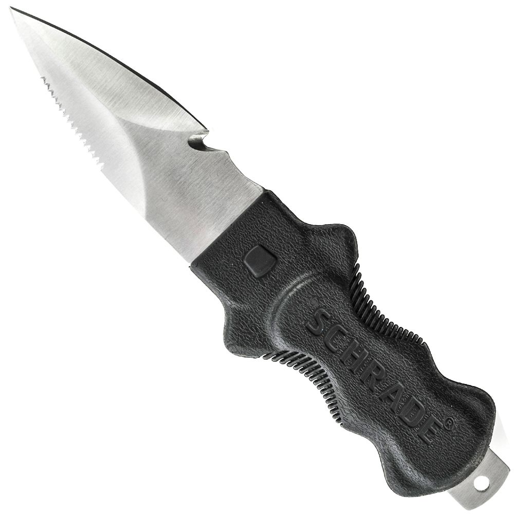 The Schrade Water Rat 2 is a lightweight dive knife with rubberized Zytel handle and partially serrated blade. The 9Cr14MoV high carbon stainless steel blade also features a notch in the blade perfect for cutting line up to 3/8" thick. The black thermopla