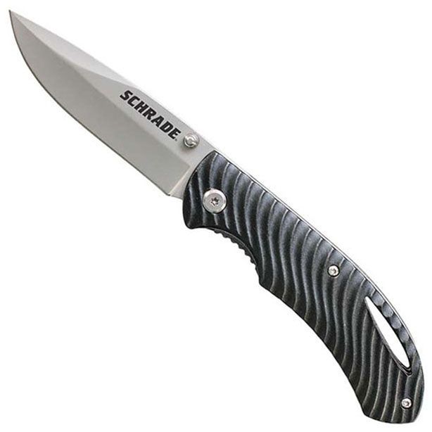 Schrade Black Aluminum Folder Drop Point 9Cr18MoV Steel Blade Liner Lock Thumb Studs