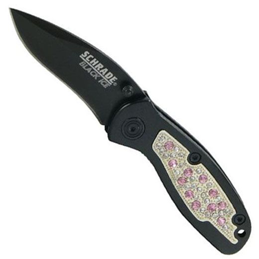 Schrade Black Ice Folder Small With Pink And White Ice Insert Knife