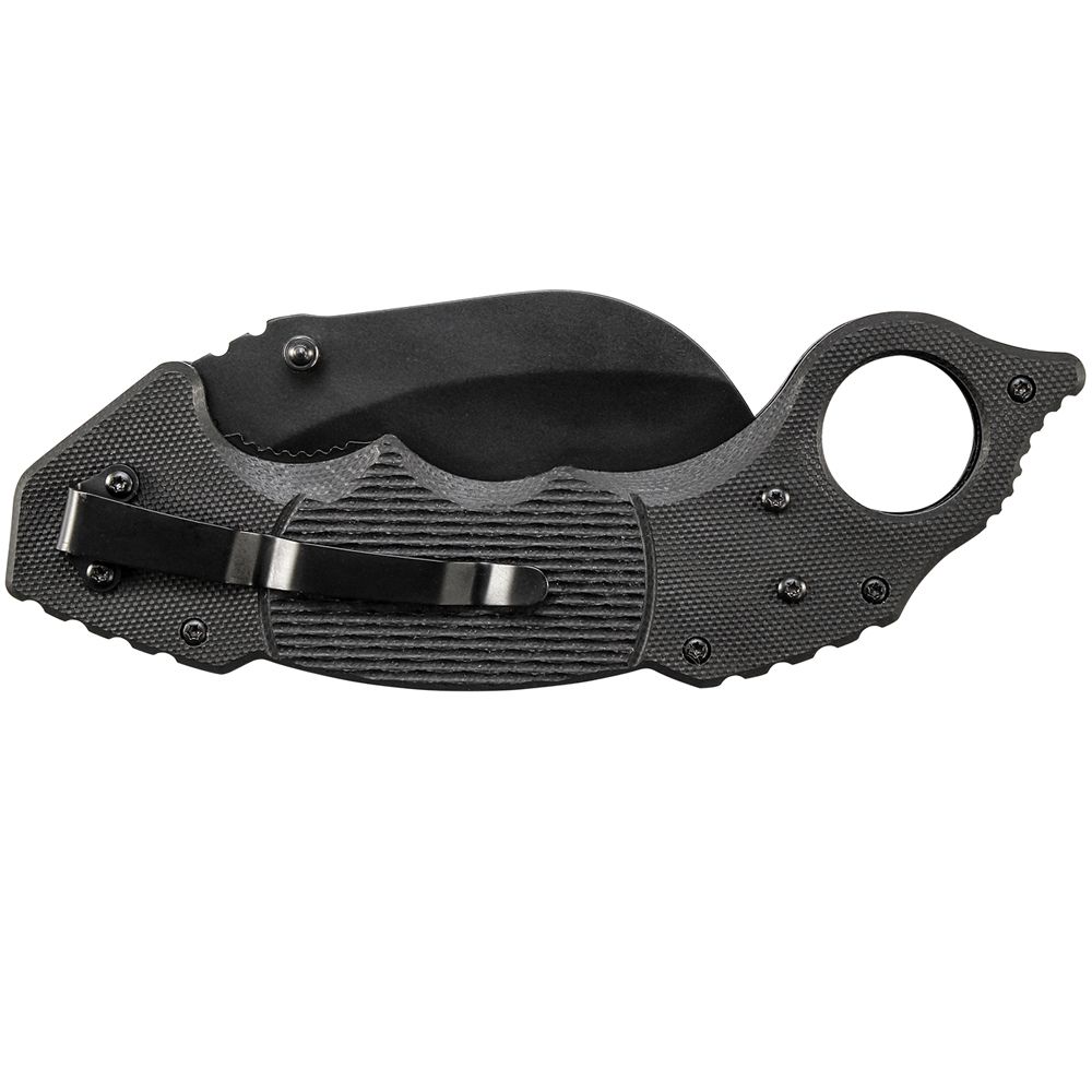 Schrade have given the ancient karambit an updated design with this modern tactical folder. This tiger claw blade has a black powder coating for low-profile use and protection from corrosion. The handle uses G-10 scales, with the traditional curved shape and finger ring used in FMA (Filipino Martial Arts). Blade access is controlled with ambidextrous thumb studs and a liner lock. Whether you’re looking for a self-defense knife or an aggressive utility folder, this karambit can handle the job.