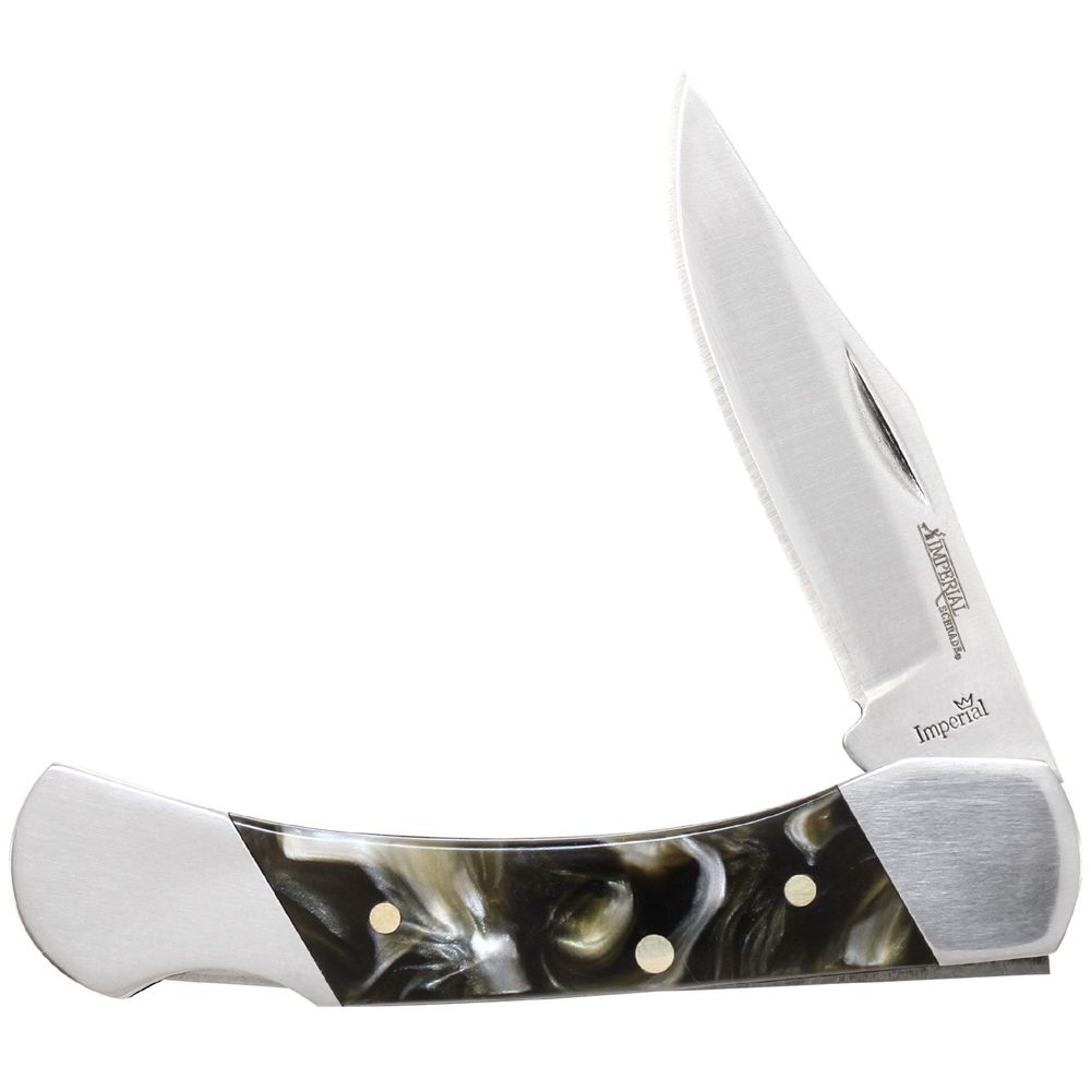 Imperial Lockback Folding Pocket Knife, 3Cr13 Stainless Steel Clip Point Blade with Nail Pull, Black and White Swirl POM Handle with Stainless Steel Bolsters, Brass Pins, and Heat Treated Back Springs.