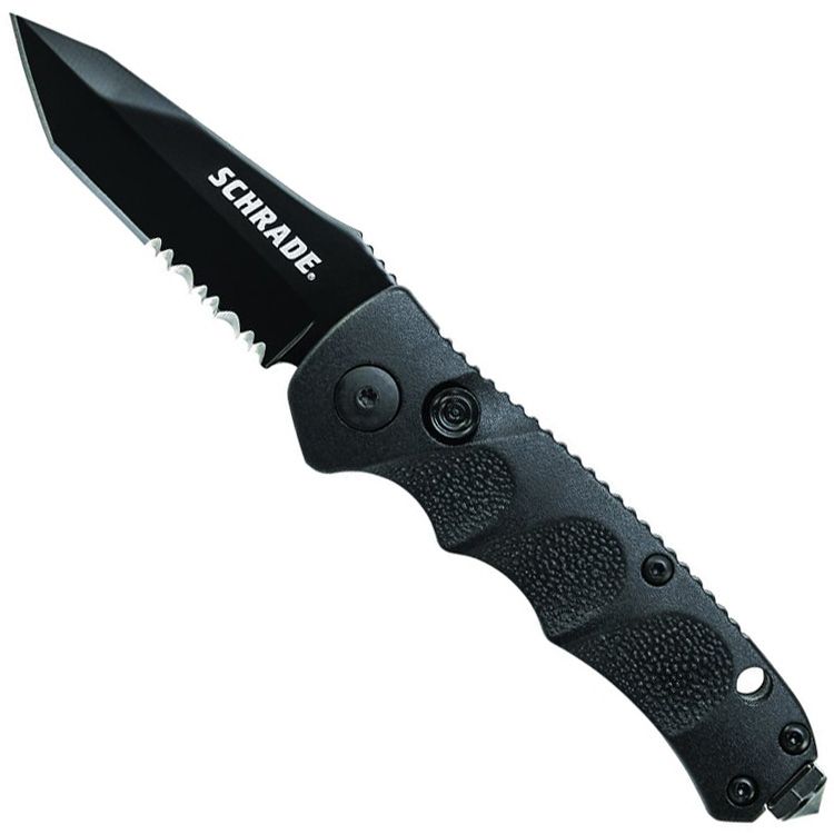 Schrade Mini Black Tanto 40 Percent Serrated 4116 Steel Push Button Lock