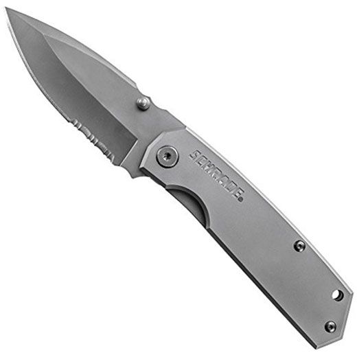 Schrade Mini Frame Lock Titanium Coated 40 Percent Serrated Drop Point Blade With 9Cr18mov Steel