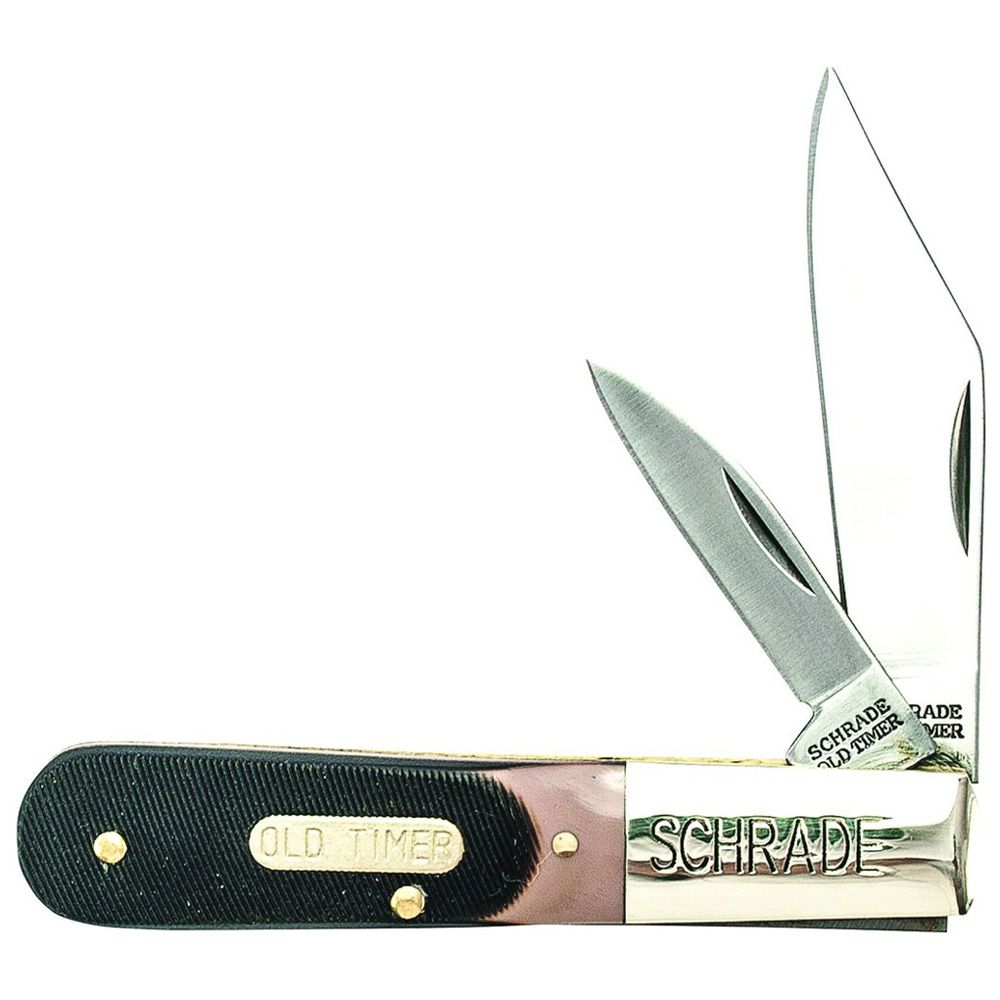 Old Timer Barlow Folding Pocket Knife, 7Cr17MoV High Carbon Stainless Steel Clip Point Blade and Pen Blade with Nail Pulls, Old Timer Sawcut Handle with Nickel Silver Bolsters, Brass Pins, and Heat Treated Back Springs.