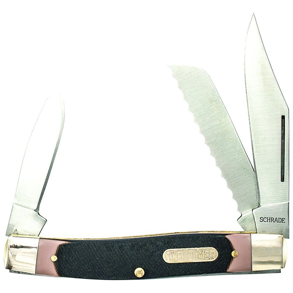 Schrade Old Timer Blazer Folder With Clip Serrated Sheepfoot And Spey Blades
